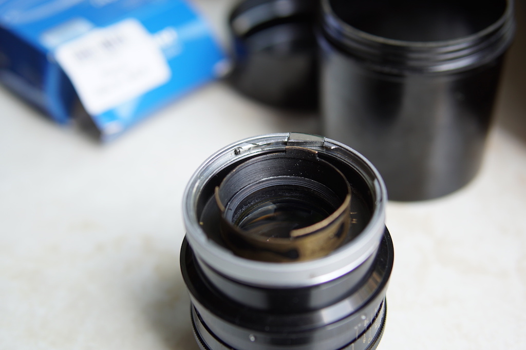 Meine auf der Drehbank hergestellte Alu Scheibe konnte ich wieder ausbauen... das Zeiss Sonnar 2/8.5 cm hält bombig und da wackelt nichts mehr.