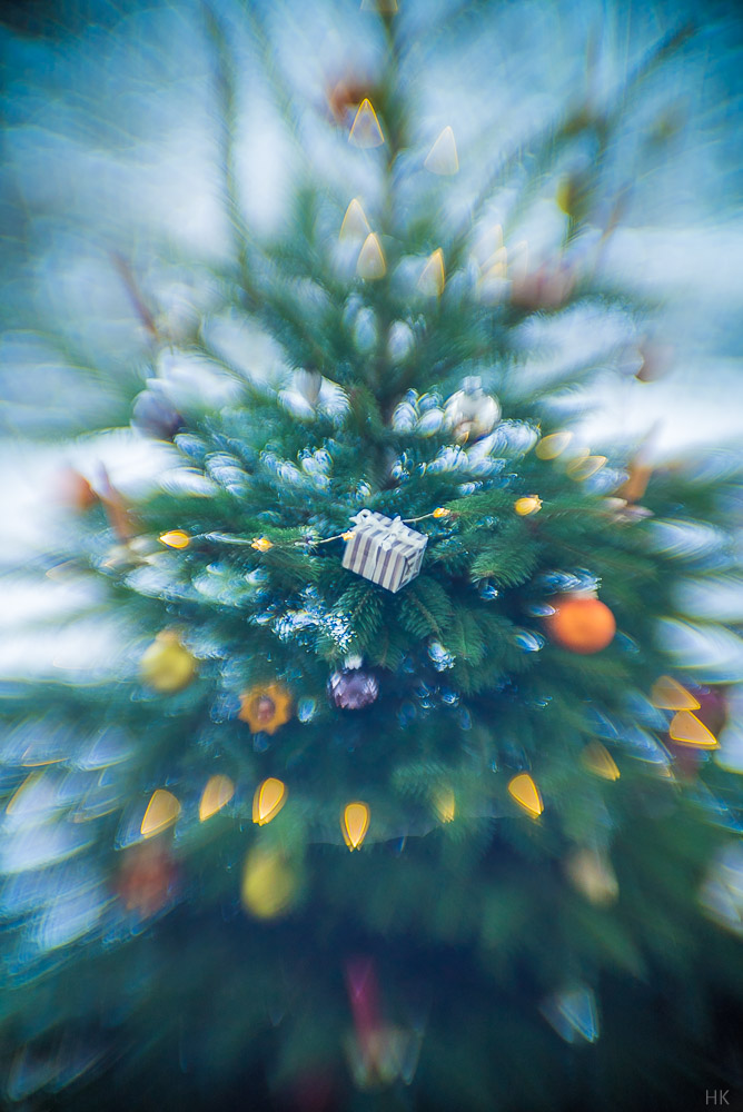...und ein Weihnachtsbaum vor verschneitem Hintergrund: