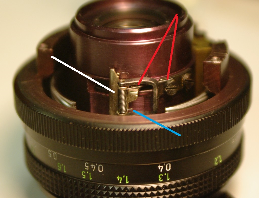 Absolut wichtig ist das Justieren mit den Beiden Schrauben, es geht nur um Teile von Millimetern, die aber die Leichtgängigkeit und Wirksamkeit der Feder sehr beeinflussen.
