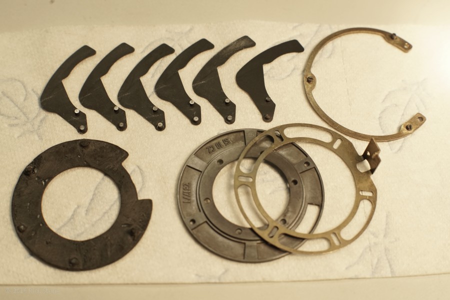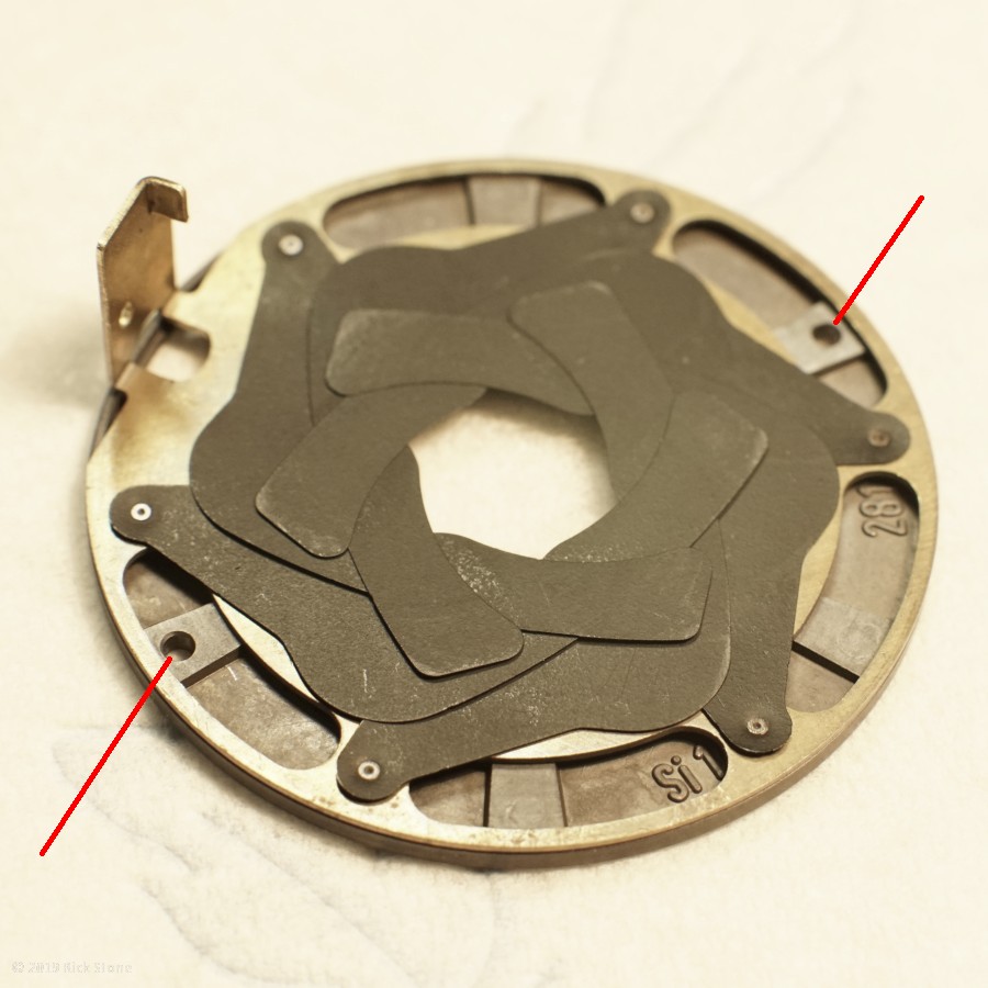#9 Die zerlegte Blende, nachdem der Plastikring vorsichtig aus den beiden Arretierungslöchern herausgehoben wurde.