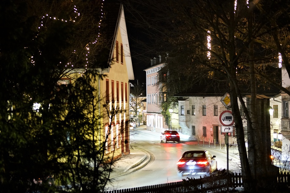 Heute war ich kurz in der Stadt unterwegs um die Offenblendtauglichkeit bei Dunkelheit und Kunstlicht