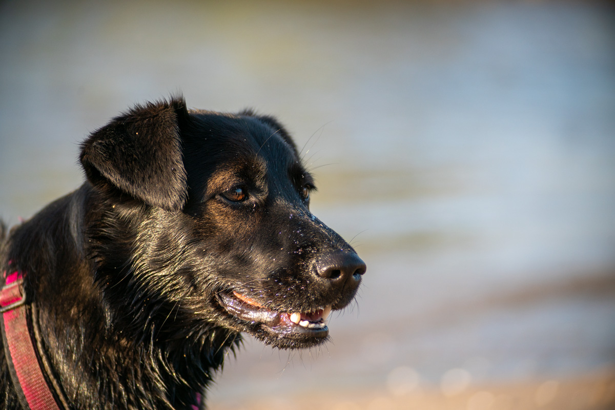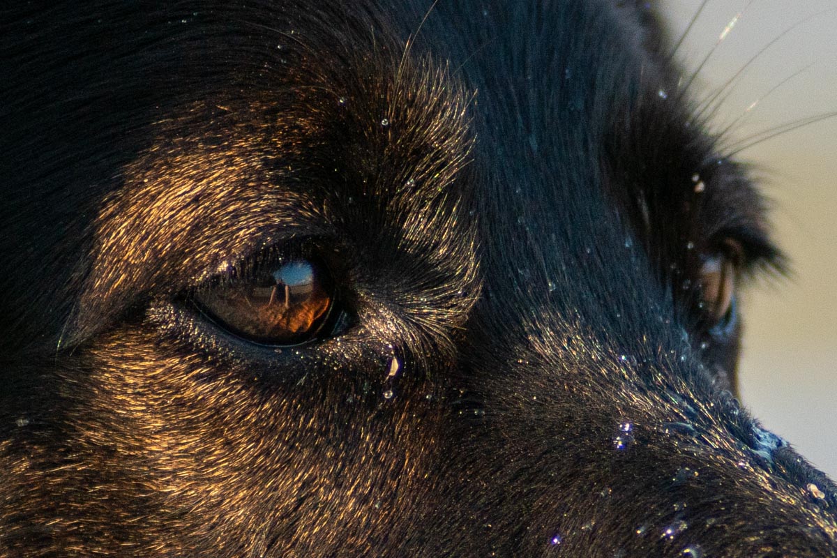 Ich hatte nur die Tiefen etwas hochgezogen (schwarze Hunde eben) und sonst hab ich nichts gemacht. LR schärft zwar standardmäßig schon beim Import, aber das war auch schon alles an Bearbeitung. Die Vignette sieht man ganz gut und im Crop auch die Farbsäume, aber trotzdem ist das schwer beeindruckend.