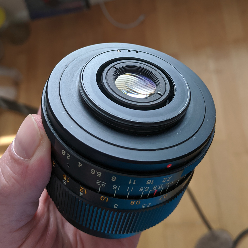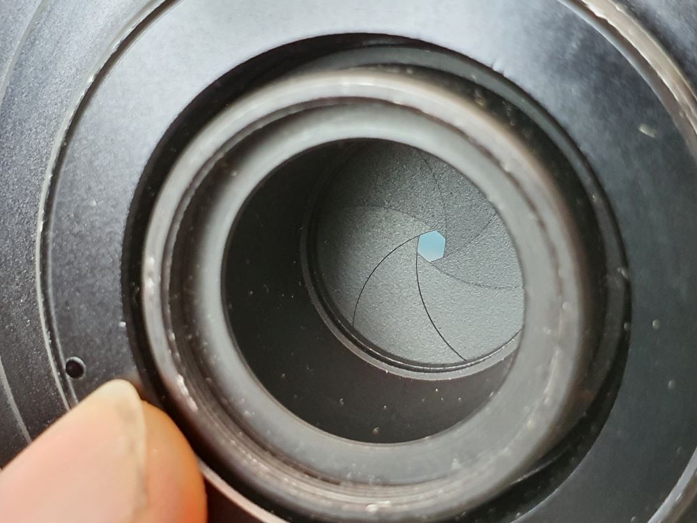 Ich habe das Objektiv zwischenzeitlich unabhängig von euren Vorschlägen noch einmal genauer angeschaut und habe auch die Vermutung, dass die hintere Linse fehlt. Mir ist aufgefallen, dass die Blendenlamellen von hinten frei zugänglich sind. Sowas habe ich bisher an keinem anderen Objektiv gesehen:
