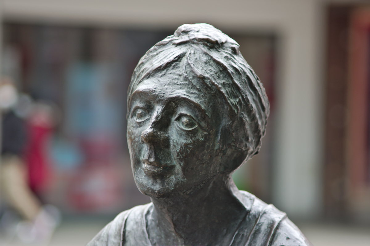 Hier mal ein Portrait mit dem Albinar, es zeigt die Granatfrau von Gerhard Olbrich. Ein angenehmer Mensch mit sonnigem Humor, war zu meiner Schulzeit Kunstlehrer, ich durfte ein paar Jahre seinen Unterricht genießen.
