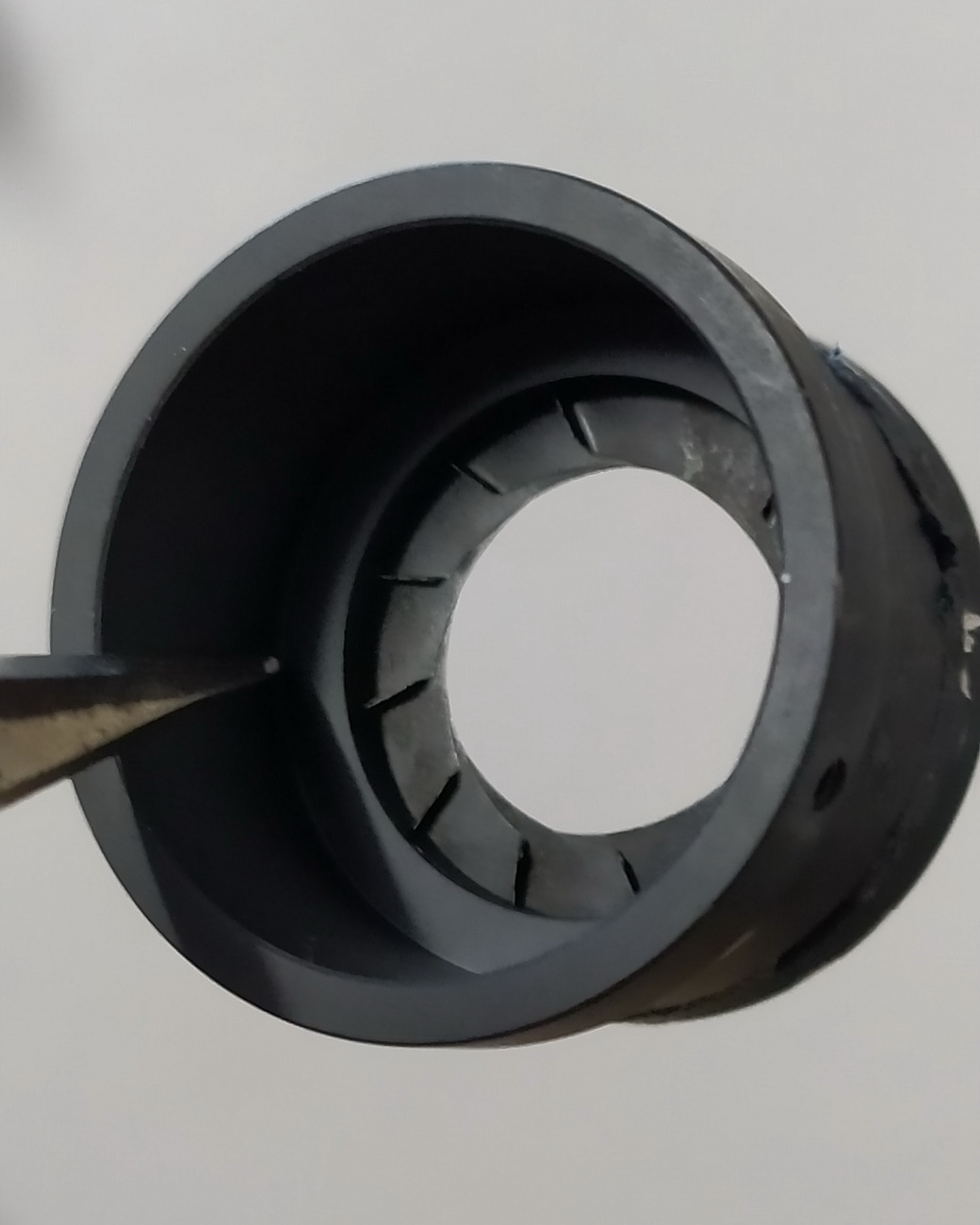 Ich habe die Lamellen in die Schlitze von dem Plastikteil reingefummelt und das Ganze auf ca. Blende 5.6 eingetellt und festgeklebt. Da das Objektiv eh keine Schärfe hinbekommt habe ich nach einigen Versuchen die Front und die hintere Linse gedreht und da kam raus.
