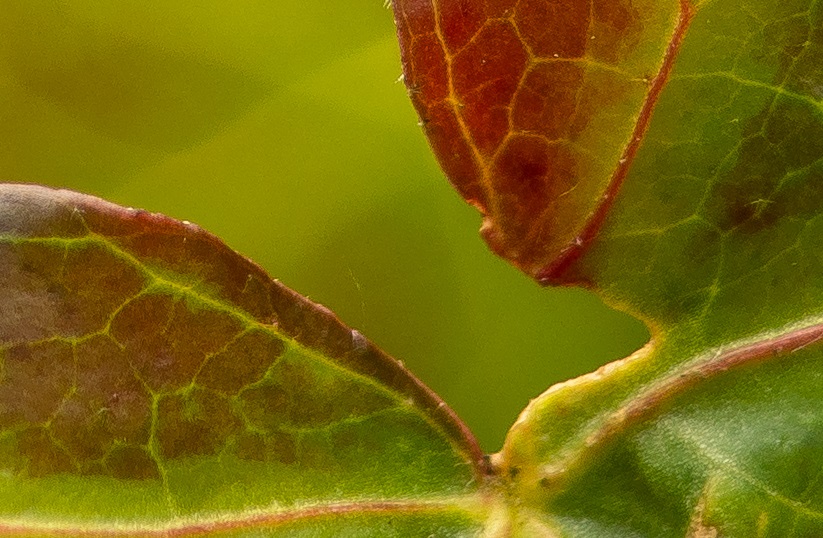 #70-72 Extrem nahe Fokussierung per Helicoid, Abstand jeweils angepasst um das Blatt in ähnlicher Größe abzubilden