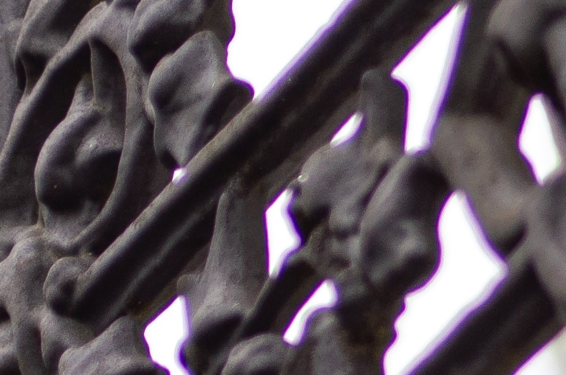 Ich empfinde die CA's vor der Schärfeebene als deutlicher sichtbar. Das grüne Fringing hinter der Schärfeebene ist deutlich dezenter.