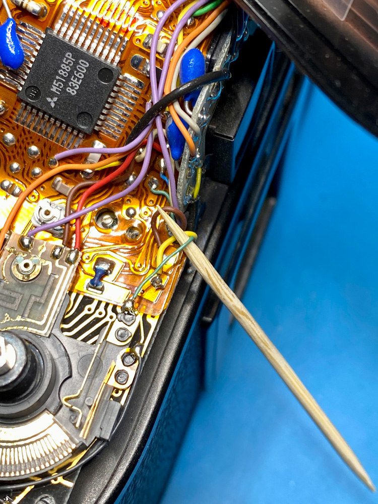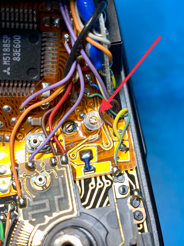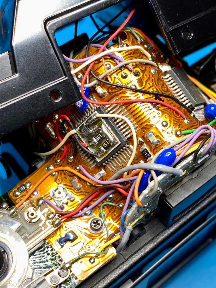 Ein interessantes Detail, das ich bisher noch bei keiner anderen X-700 gesehen habe, ist dieser Aufbau auf dem linken IC, dort, wo die beiden weißen Kabel abgehen.