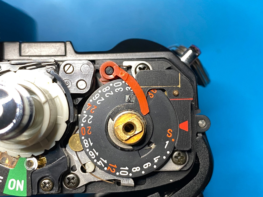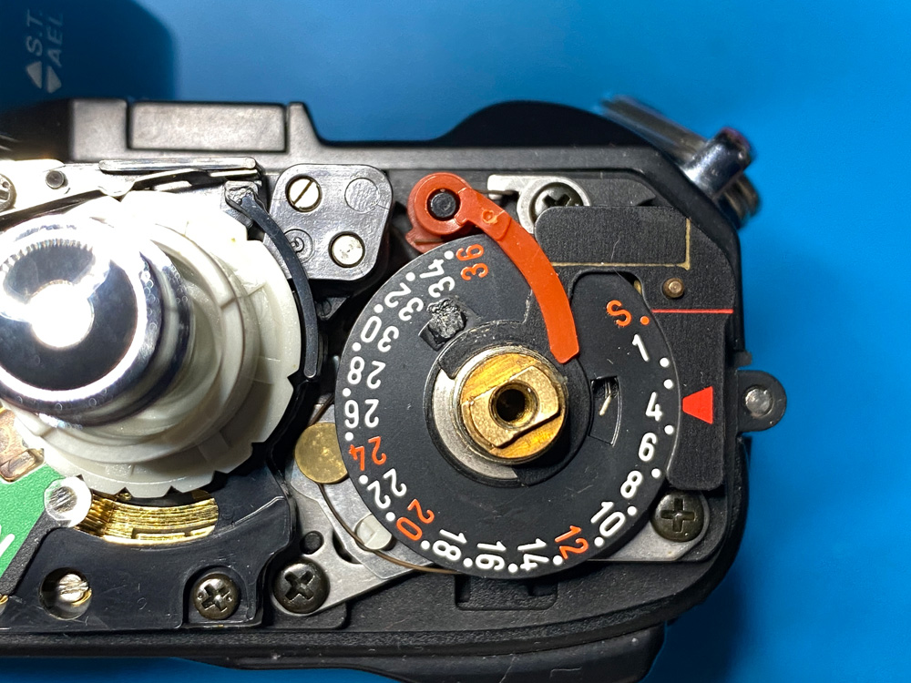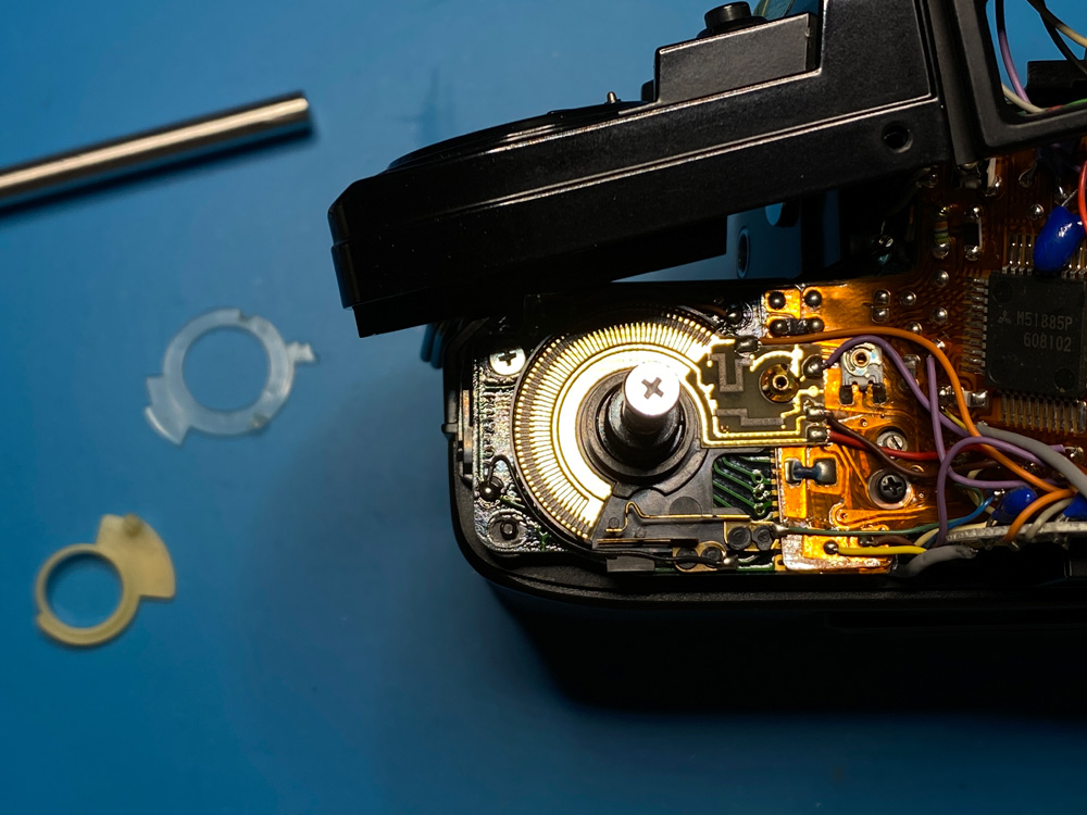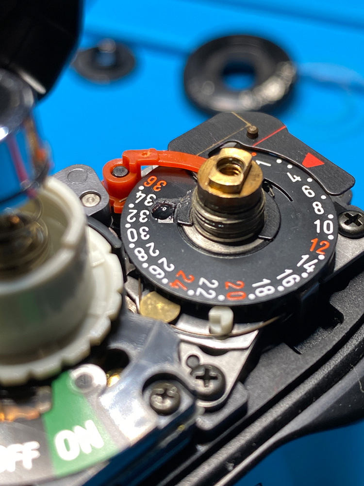 Es ging um einen abgebrochenen Stopper auf der Indexscheibe des Bildzählwerks, den ich durch einen aufgeklebten Kunststoffteil ersetzte.