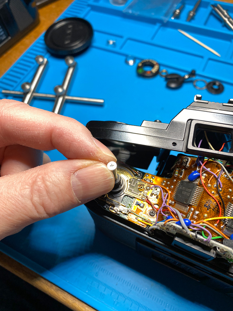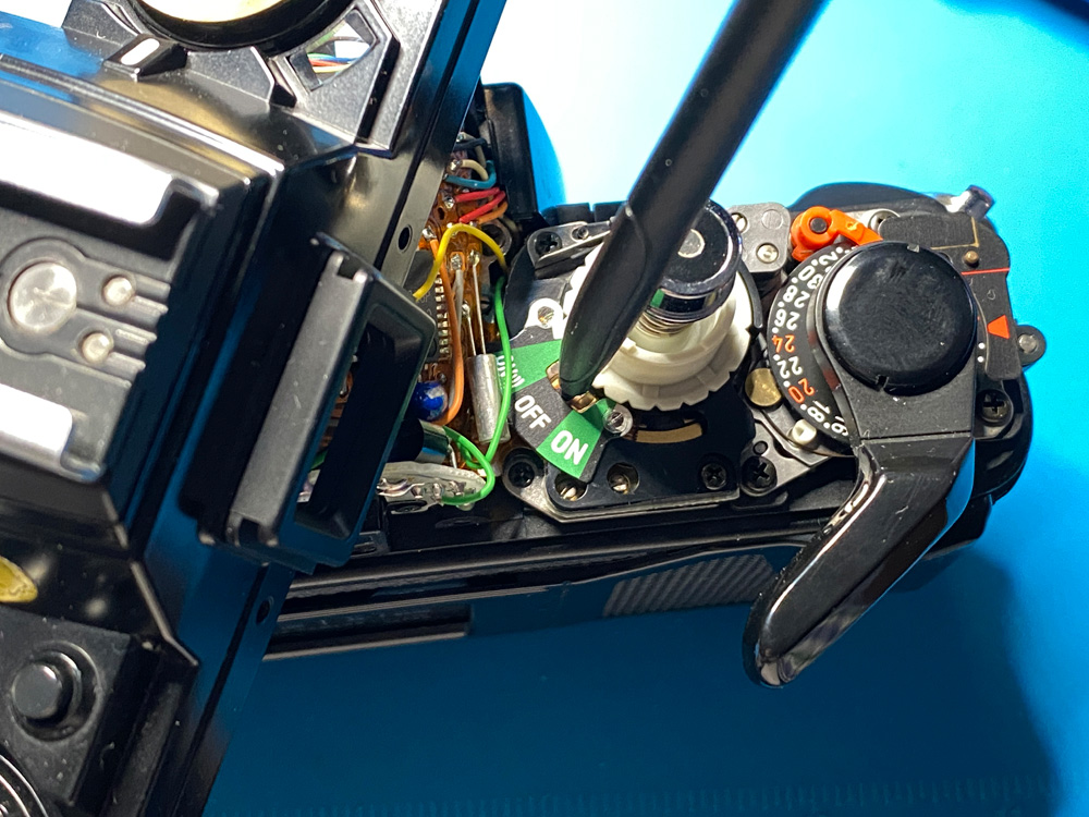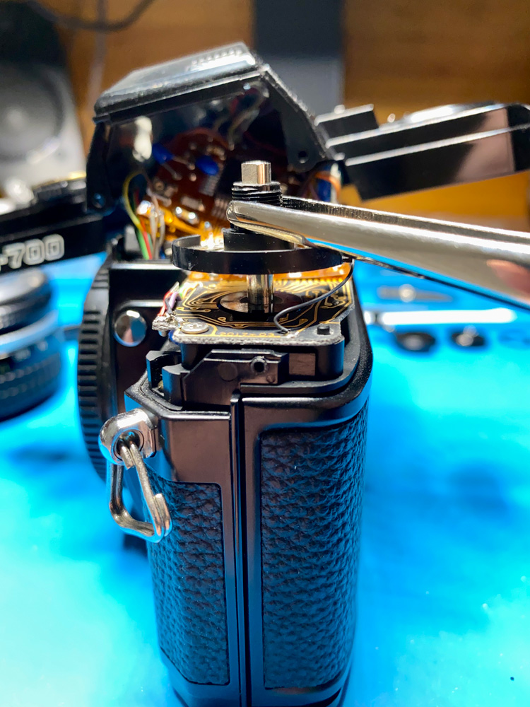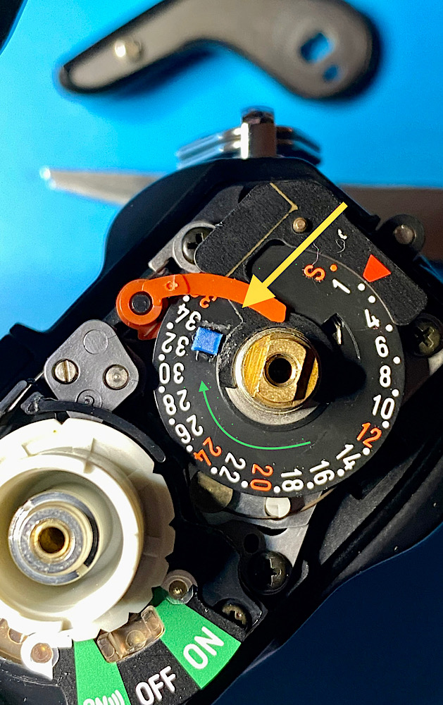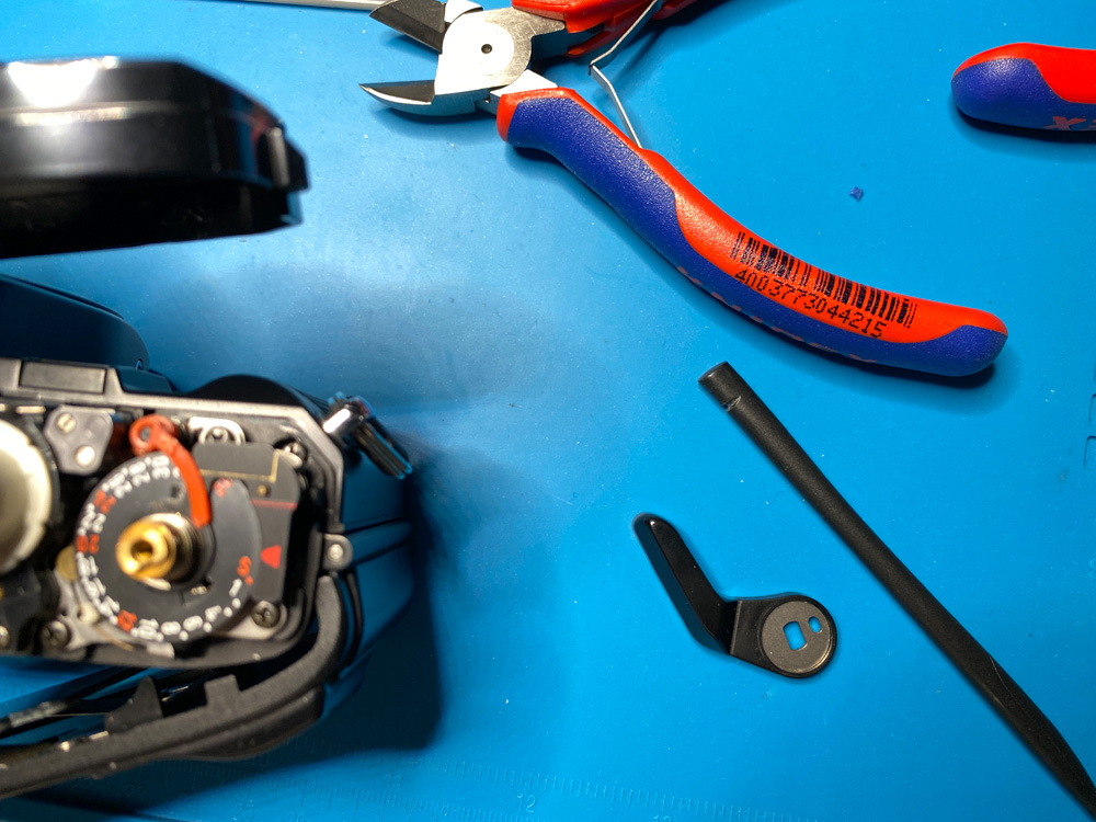 Es ging um einen abgebrochenen Stopper auf der Indexscheibe des Bildzählwerks, den ich durch einen aufgeklebten Kunststoffteil ersetzte.