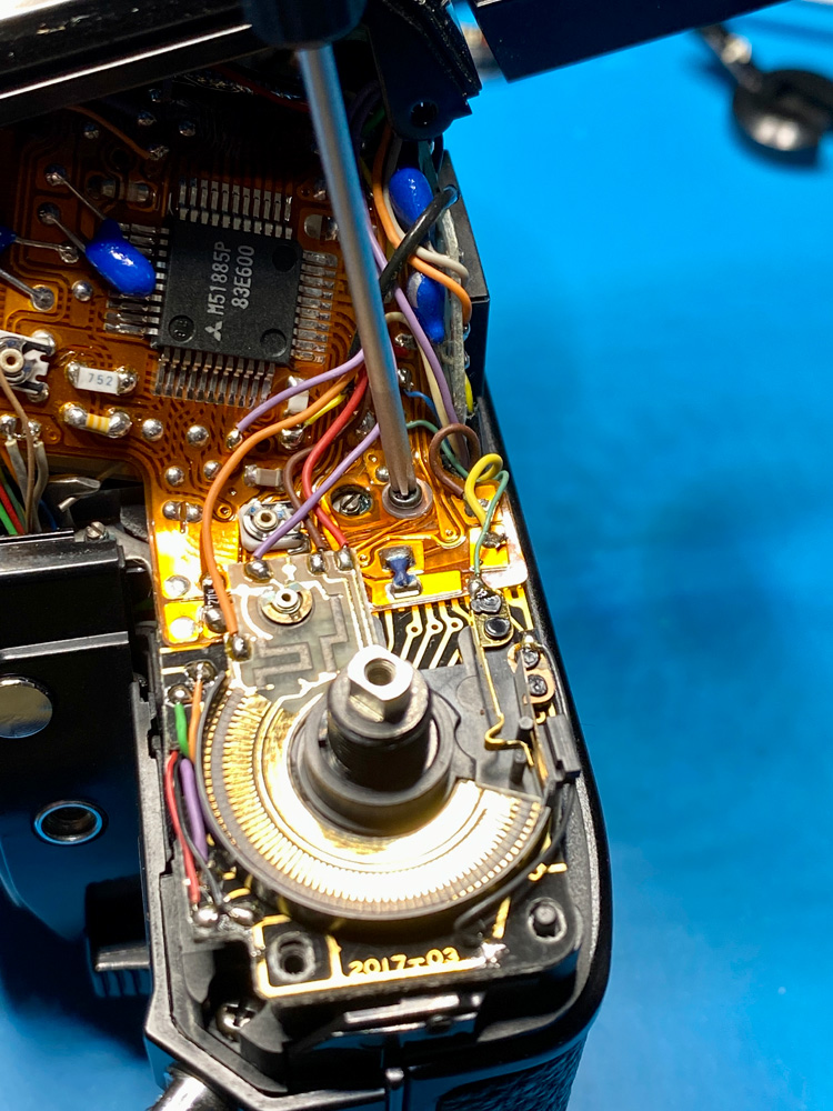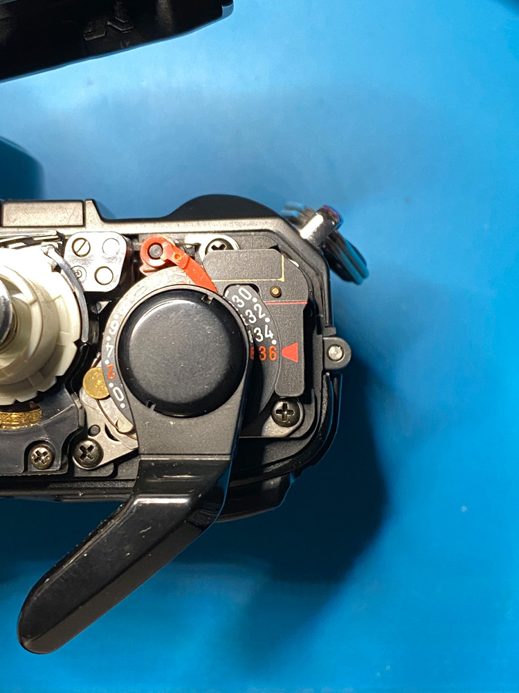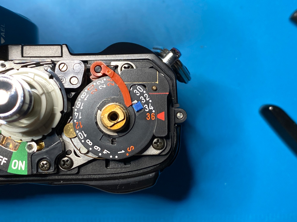Beim Check einer X-700, die ich heute geöffnet und wieder zusammengebaut hatte, sah ich beim Spannen des Verschlusses, dass das Bildzählwerk vor der Startmarke "S" hängenblieb.