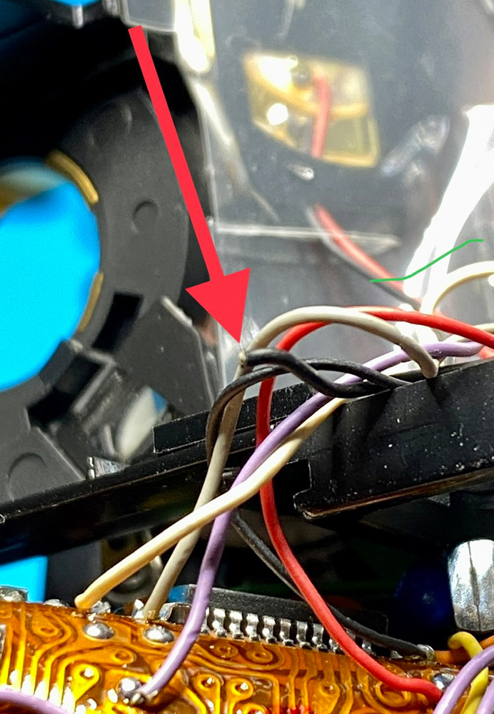 Die Lötstelle auf der flexiblen Platine am Prisma ist gefunden, eine andere meiner X-700 gab mir den Tipp ;)
