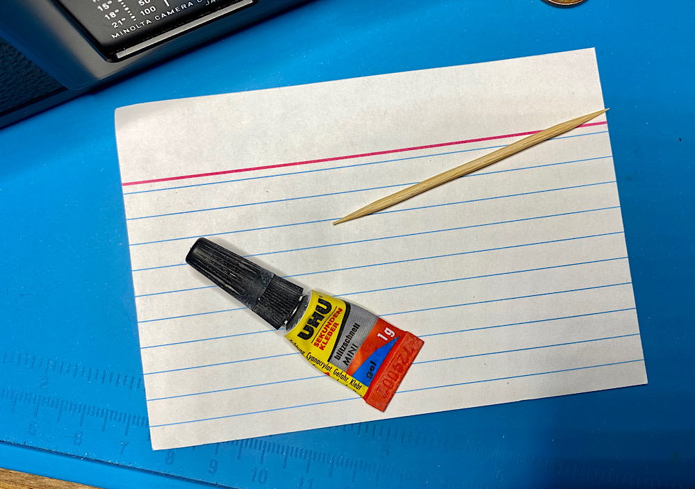 ... und setze kühn einen Tropfen Sekundenkleber auf die besagte Stelle.