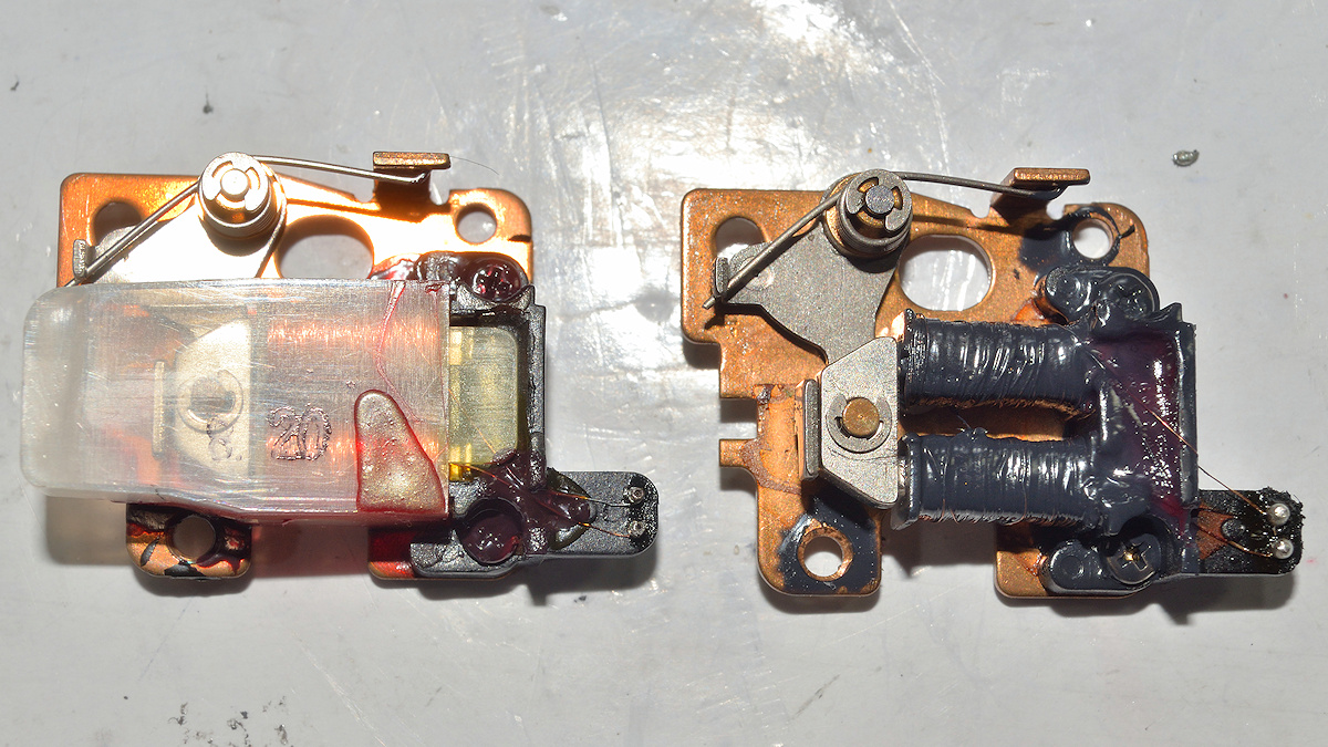 Dabei habe ich noch den Spulenwiderstand des Elektromagneten verglichen zwischen der originalen mit 90 Ohm und der geflickten mit nur noch 37 Ohm.