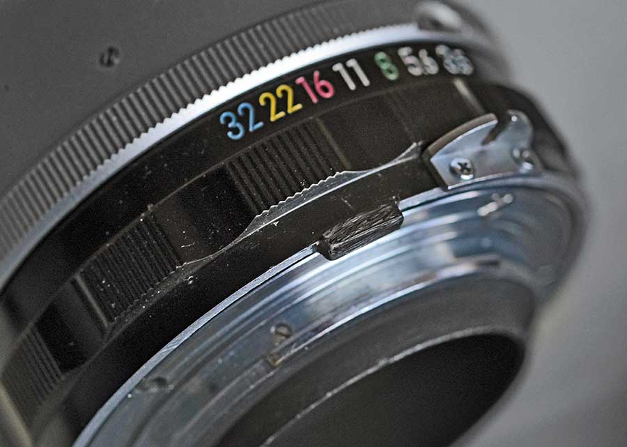 Daher schließt die Springblende derzeit nur mit Geräusch, und da der Bolzen verkratzt ist, hakelt sie auch beim nahe fokussieren.