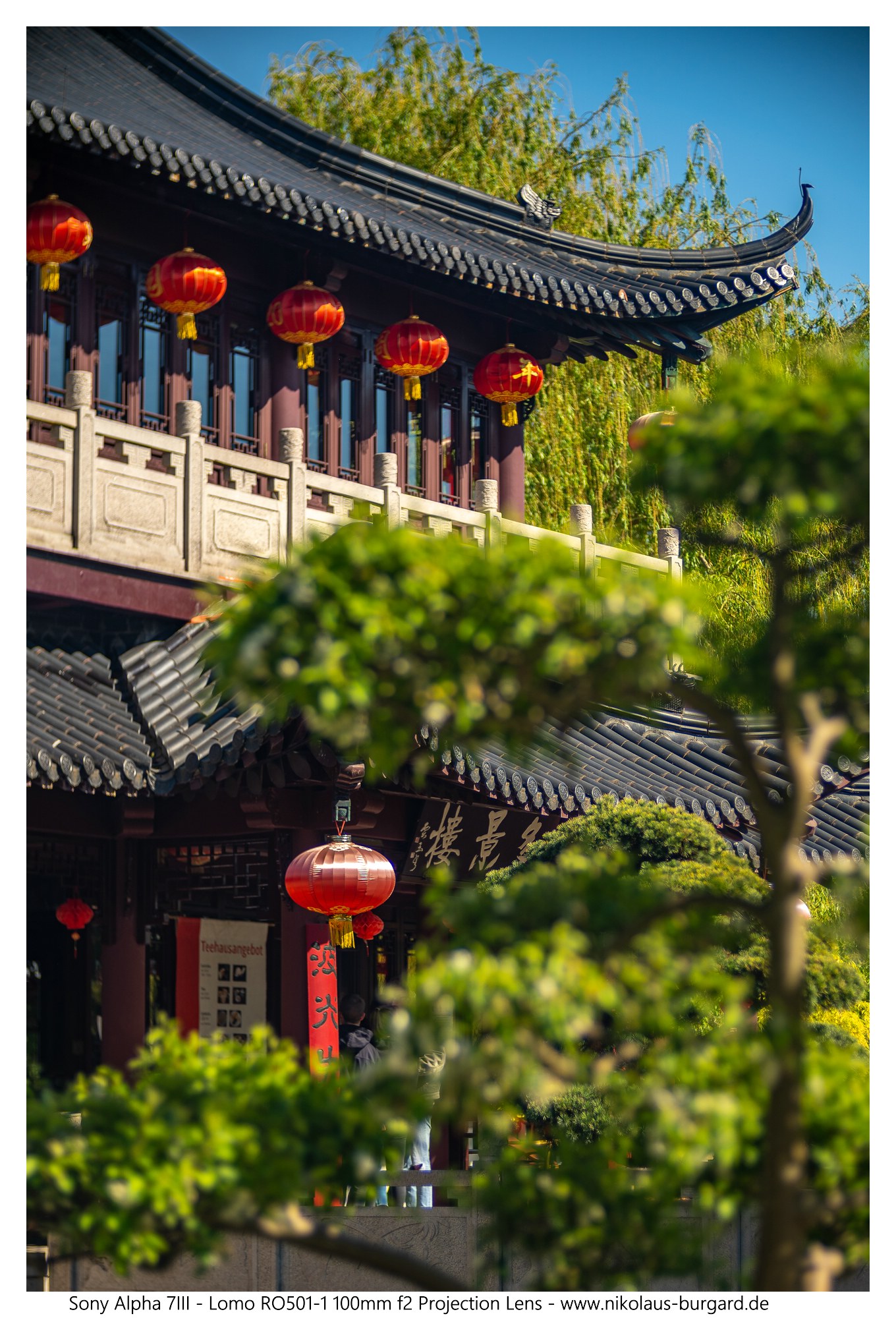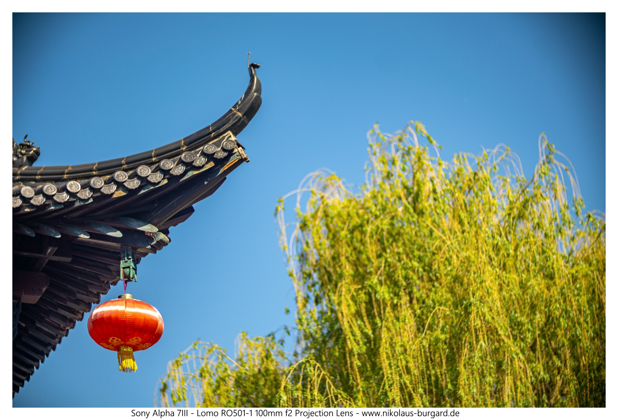 #42 Fokus auf der roten Laterne unterhalb des Daches