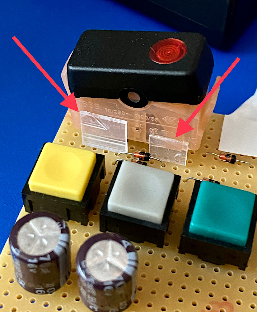 - Der Kippschalter für die Superhelle braucht eine Stabilisierung, da sein Gehäuse nicht auf der Platine aufsitzt und beim Betätigen wackelt.