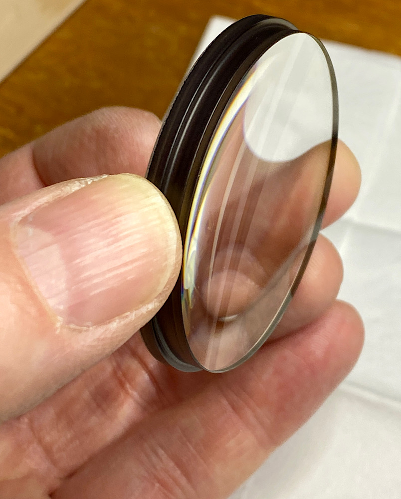 Die Frontlinse ist mit einem Zierring befestigt.