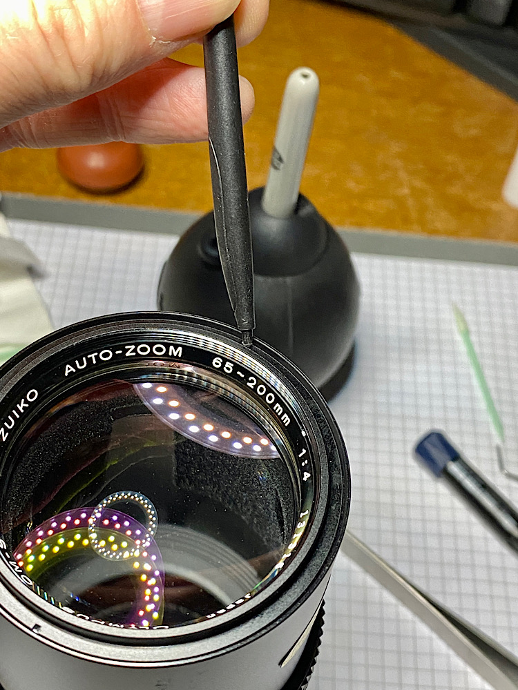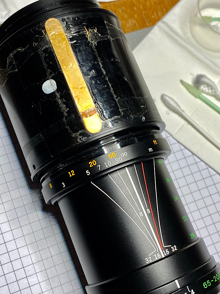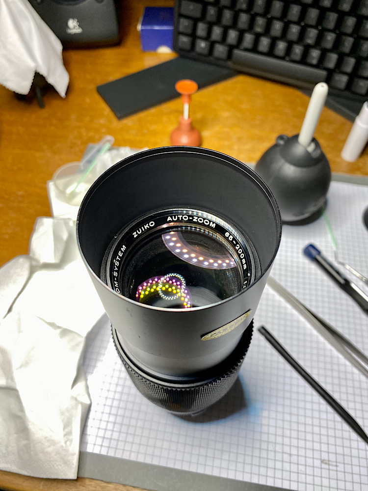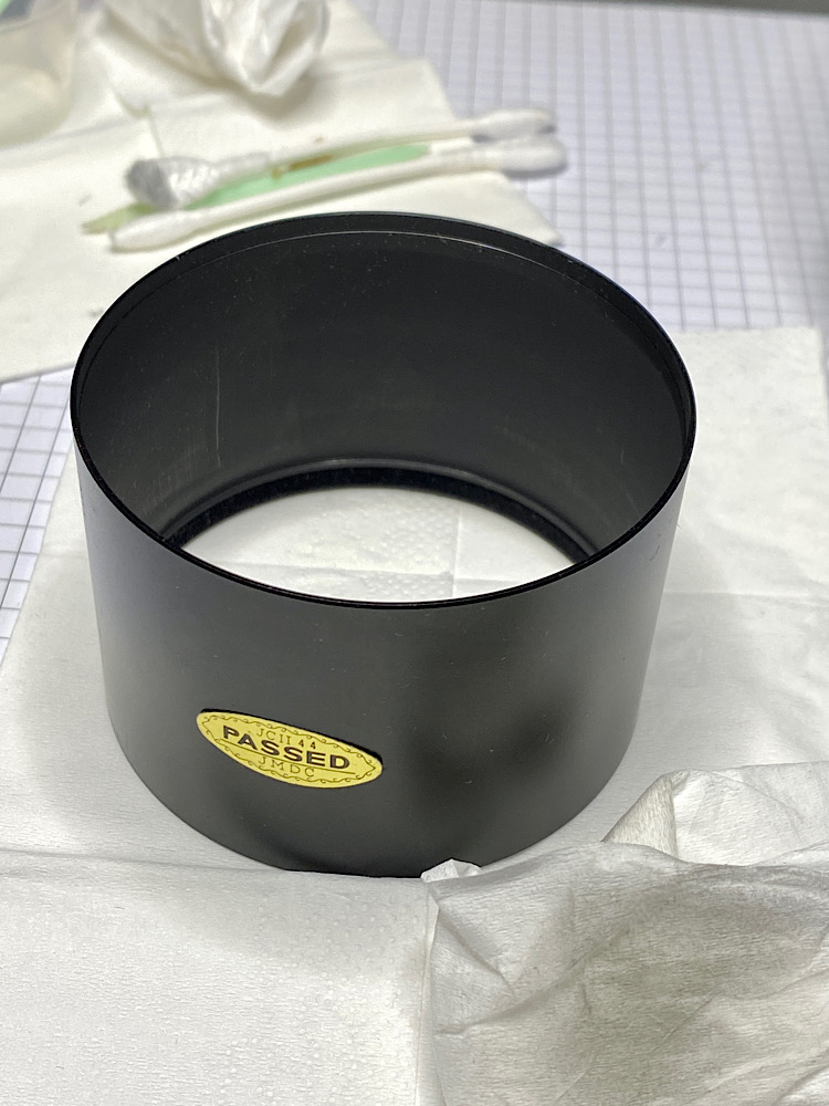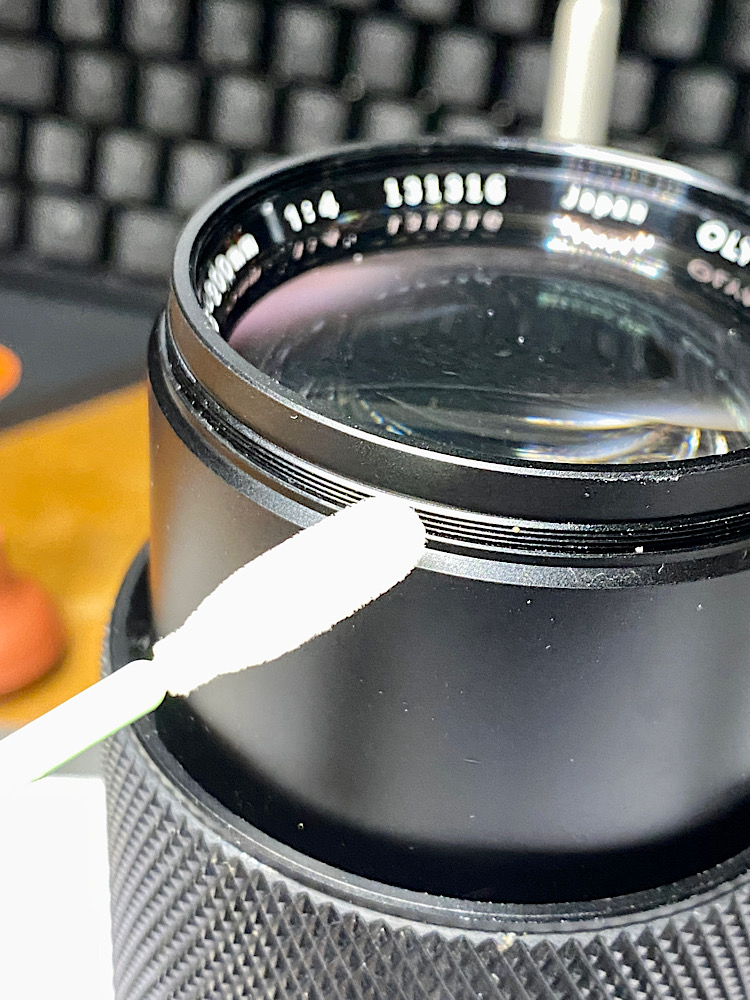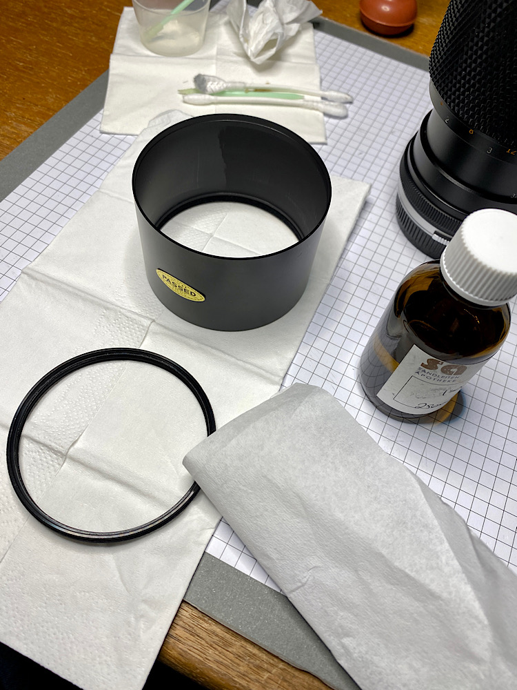 Reinigung der Gegenlichtblende, ihres Halteringes und des Gewindes am Tubus - ein Antidot für WD-40 ist Isopropylalkohol ;-)
