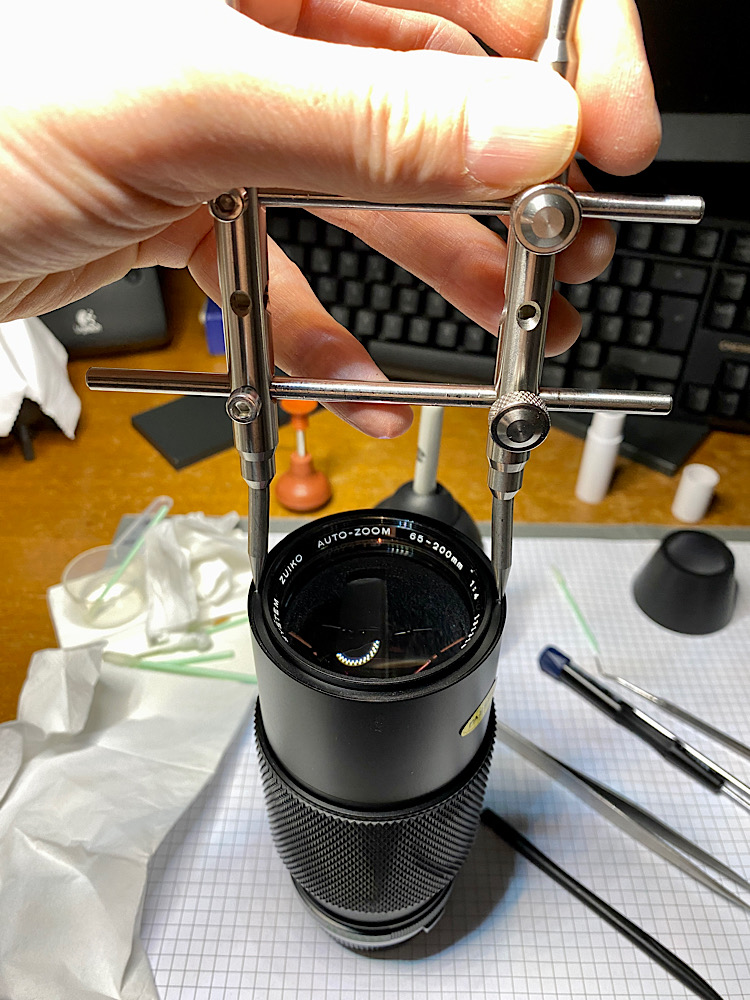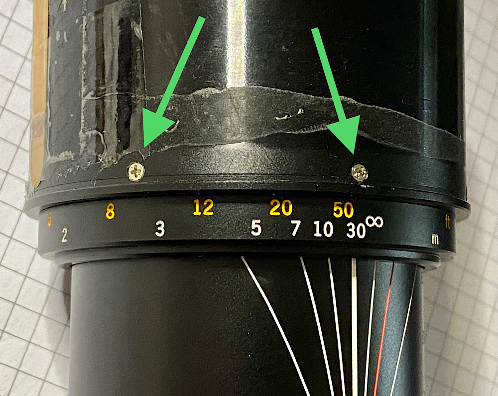 Zur Justage lässt sich der Fokusring über Schrauben entkoppeln. Er bewegt dann das vordere Helicoid nicht mehr.