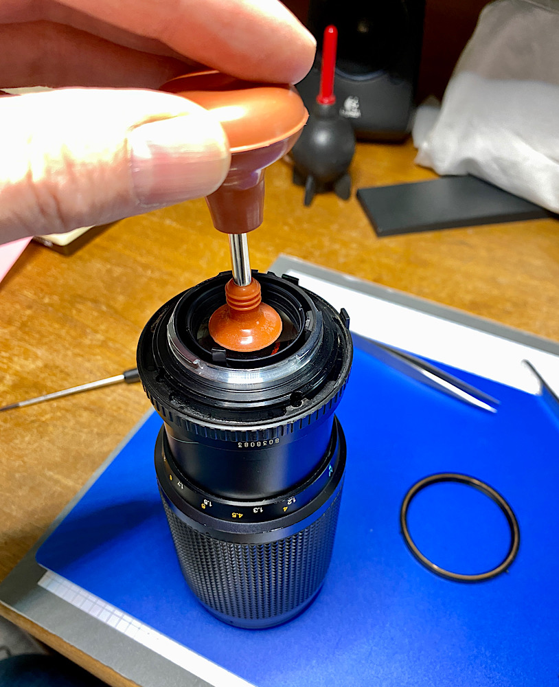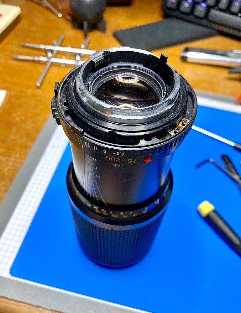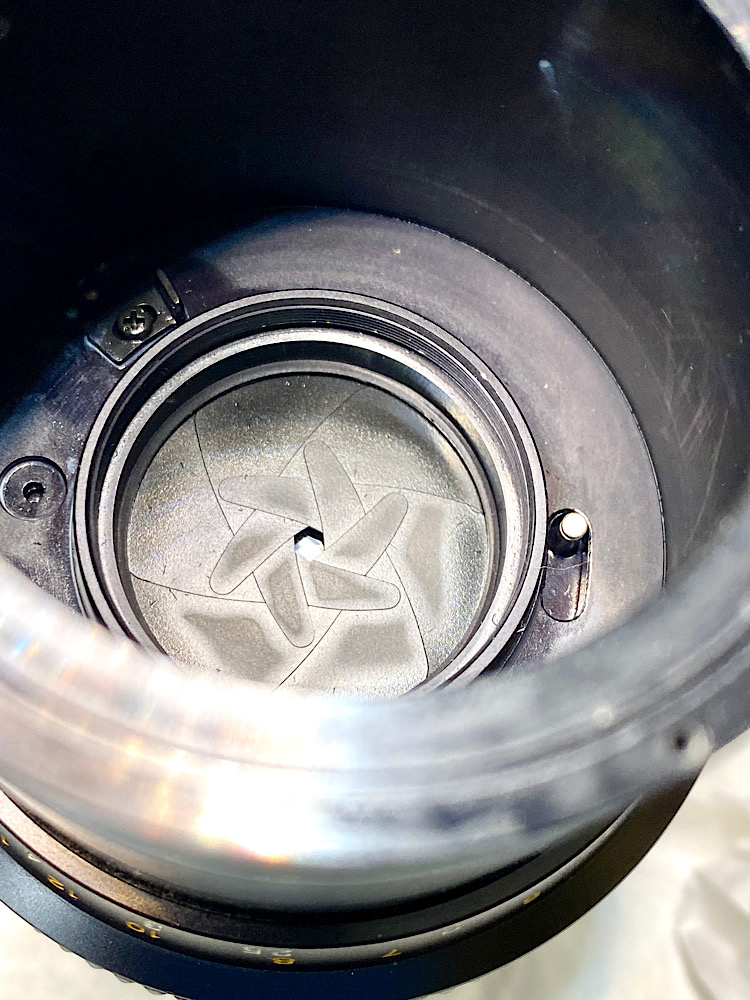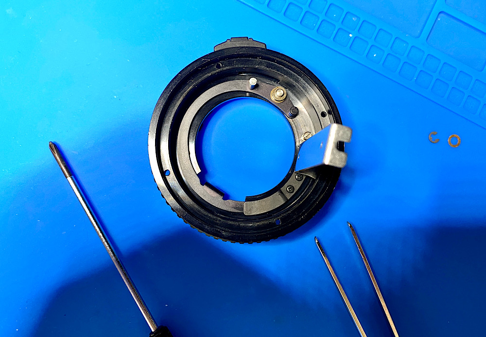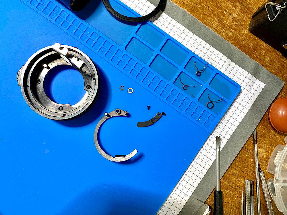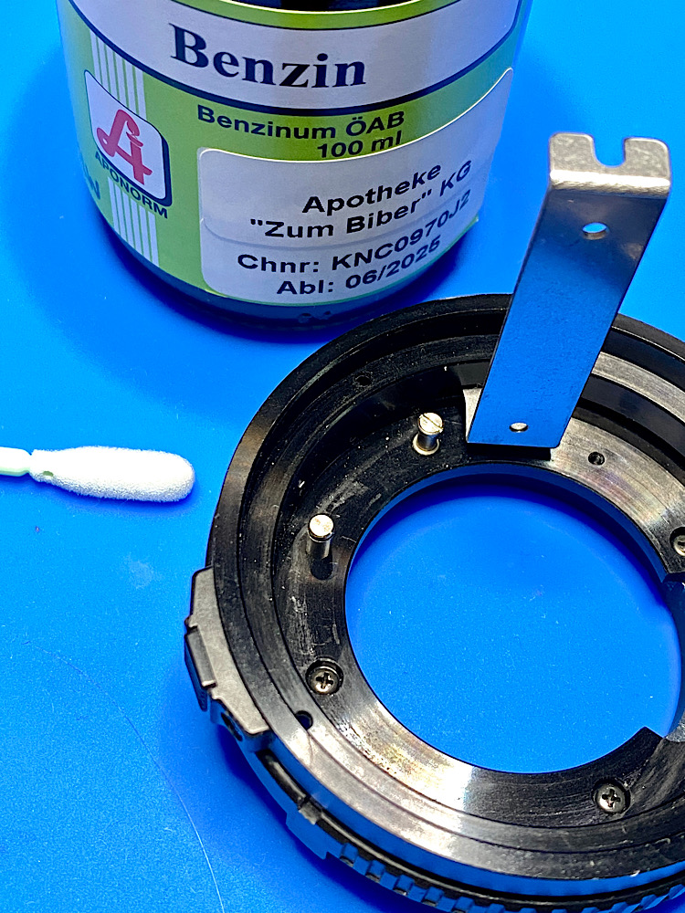 Also demontierte ich die auch Blendenmechanik im Bajonettring, um sie zu säubern.