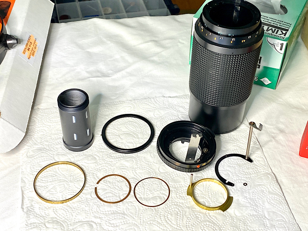 Das Entölen war ein Erfolg, da der Blendenmechanismus ohne der gekuppelten Blendenmechanik im Bajonettring einwandfrei funktionierte.