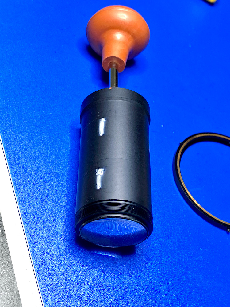 … möglichst abdichtete, damit der Sprit, bei gedrehtem Tubus, schön nach unten aus dem Blendenregister läuft.