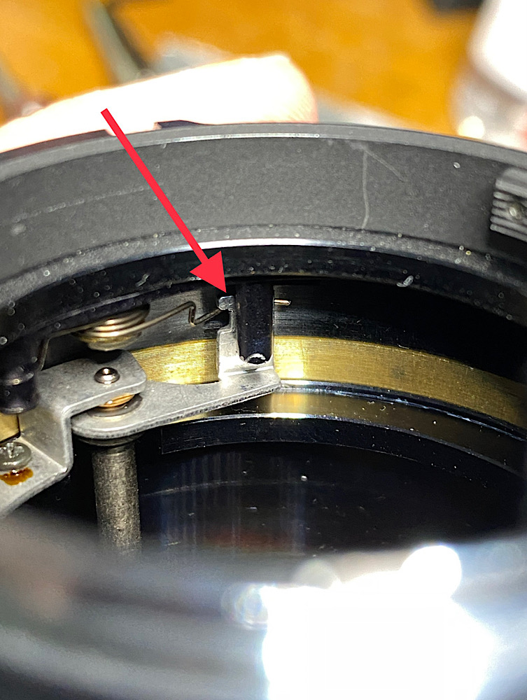 Offenkundig war der Hebel eine Spur „zu lang“ und drückte die Mechanik, auf der er sitzt, gegen den Bajonettring. Deshalb entstand Reibung, die die Probleme mit dem Öffnen und Schließen der Blende verursachte.