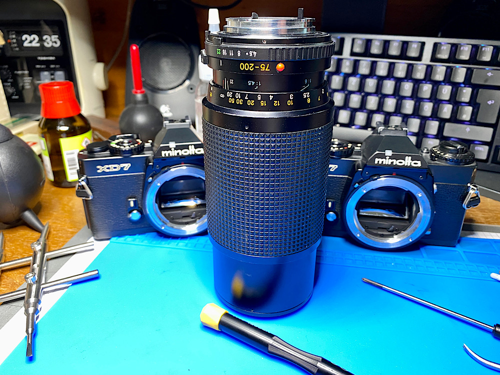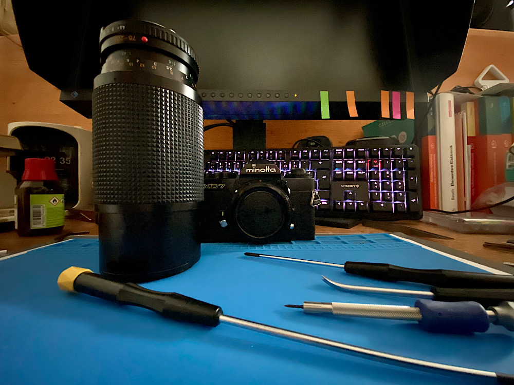 Auf die Blendenlamellen des MD 74-200/4.5 hatte ich ja kräftig Benzin aufgetragen, da sie wegen Verölung nur zeitverzögert schlossen.