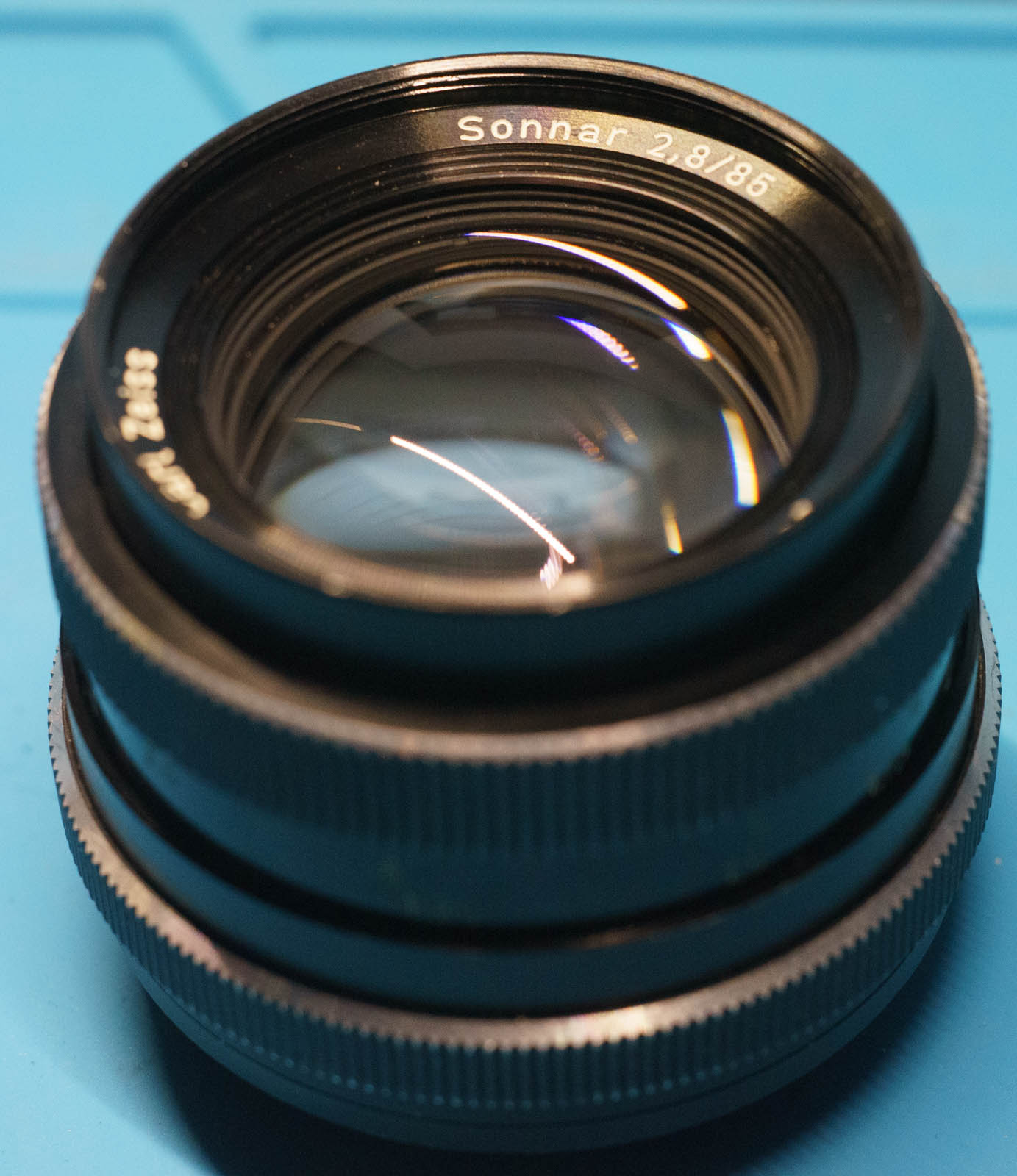 Ich bin dann nach meiner Erinnerung so vorgegangen, dass unendlich mit Blick auf das Bajonett so aussieht, dass der Verschlussring der die Linsen hält plan mit dem Bajonett zu liegen kommt. Dann habe ich geschaut, ob der Entfernungsring beim Unendlich Anschlag über den Bohrungen für die Löcher zu liegen kommt und wieviel gegebenenfalls noch fehlt. Mit ein paarmal ein klein wenig hin- und her hat es dann geklappt. Das Objektiv ist wieder zusammengebaut.