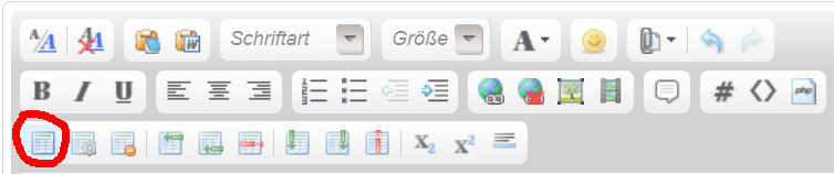 1. Tabelle einfügen (sie bewirkt, dass die Bilder automatisch auf die eingestellte Breite skaliert werden - darüber hinaus lassen sich die Bilder in der Tabelle anklicken, wodurch sich der Link auf die Originale in einem extra Fenster öffnet.