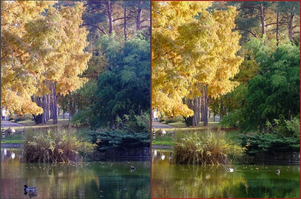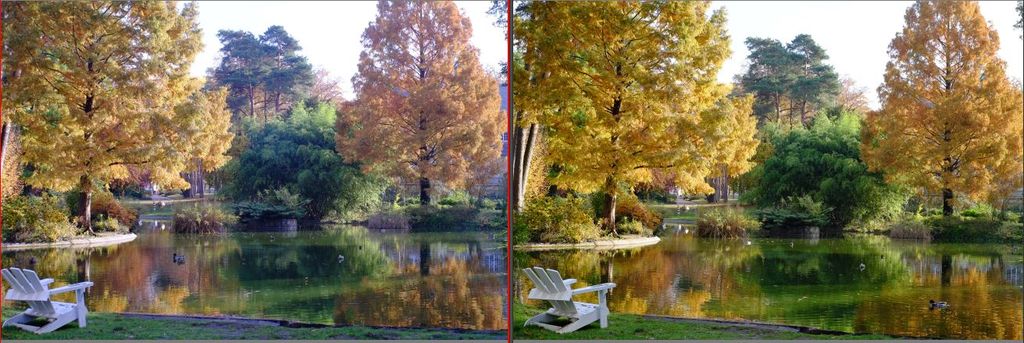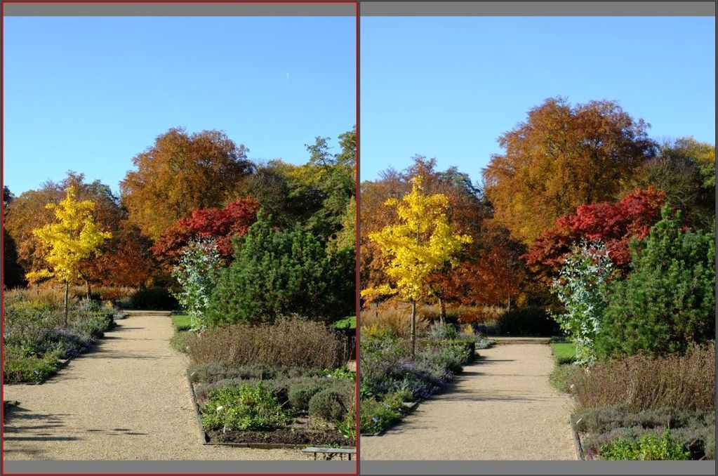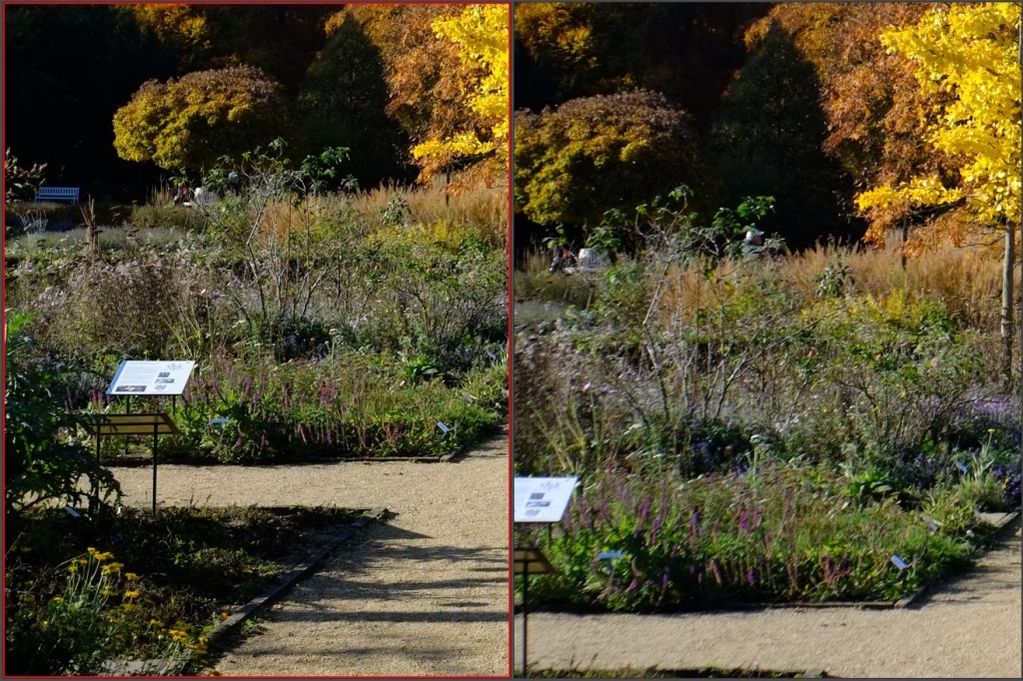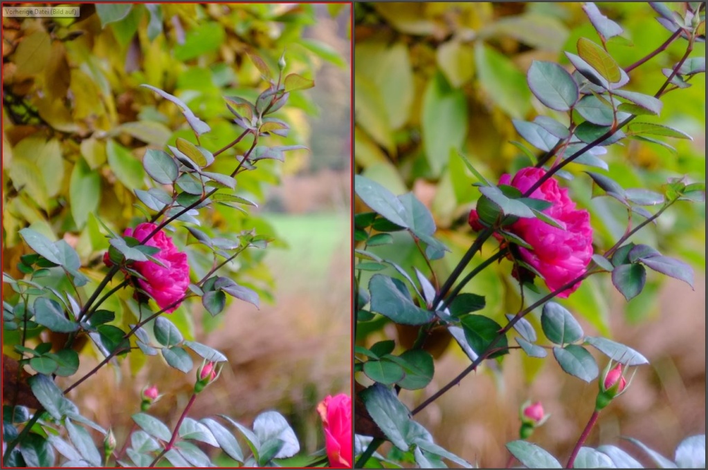 bei Licht von schräg hinten sind die Farben und Kontraste des Travegon fast genauso gut (XF links, Travegon rechts, F 8.0)