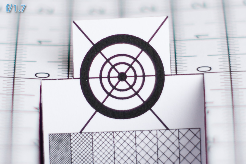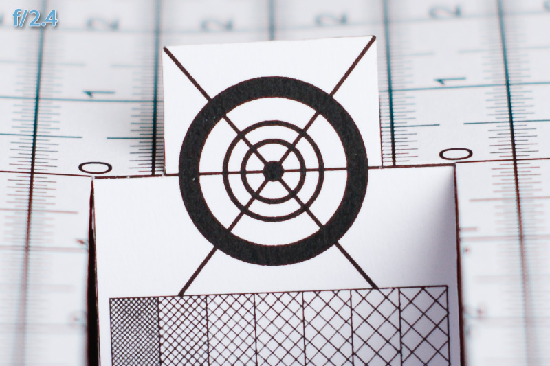 Ich habe Dir mal eine Reihe Testbilder gemacht, allerdings "nur" an 12MP Kleinbild, also deutlich weniger Auflösung.. ;) Hier mal die Ergebnisse von f/1.4 bis f/2.4 (mehr abblenden vergrößert nur den Schärfebereich bzw. mehr Schärfe gibt der Druck nicht her), jeweils 100% Ausschnitte, unbearbeitet bis auf das zweite: