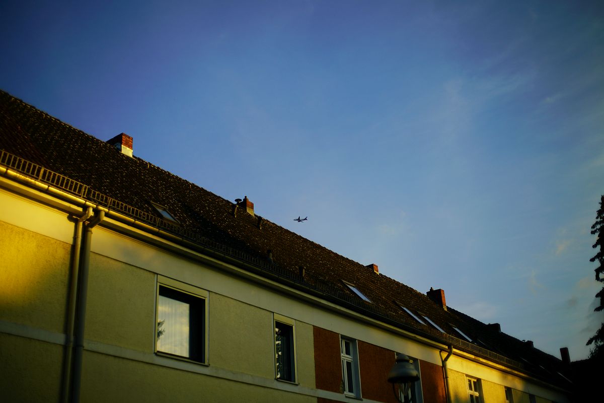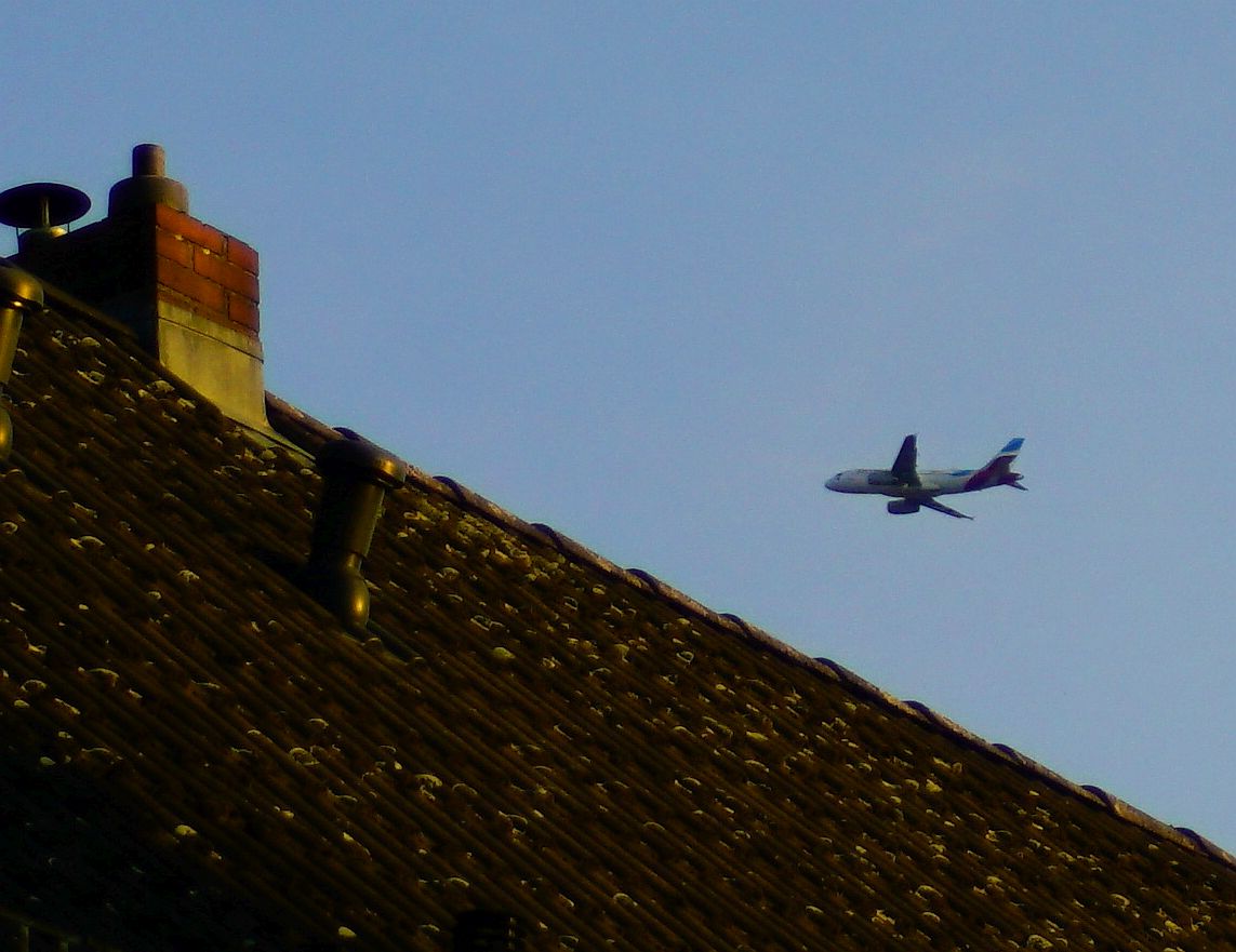 Dann brummte noch ein Flugzeug von Tegel aus über unser Haus und ein kleines Teufelchen sagte: Drück ab! 40mm-Optik bei 2,2! Gar nicht schlecht!