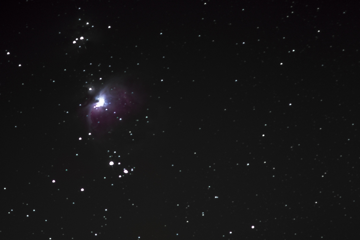 Hab mich mal am Orionnebel probiert mit durchwachsenen Ergebniss. Da es trotzdem mein bestes Bild des Nebels ist, zeig ich es euch.