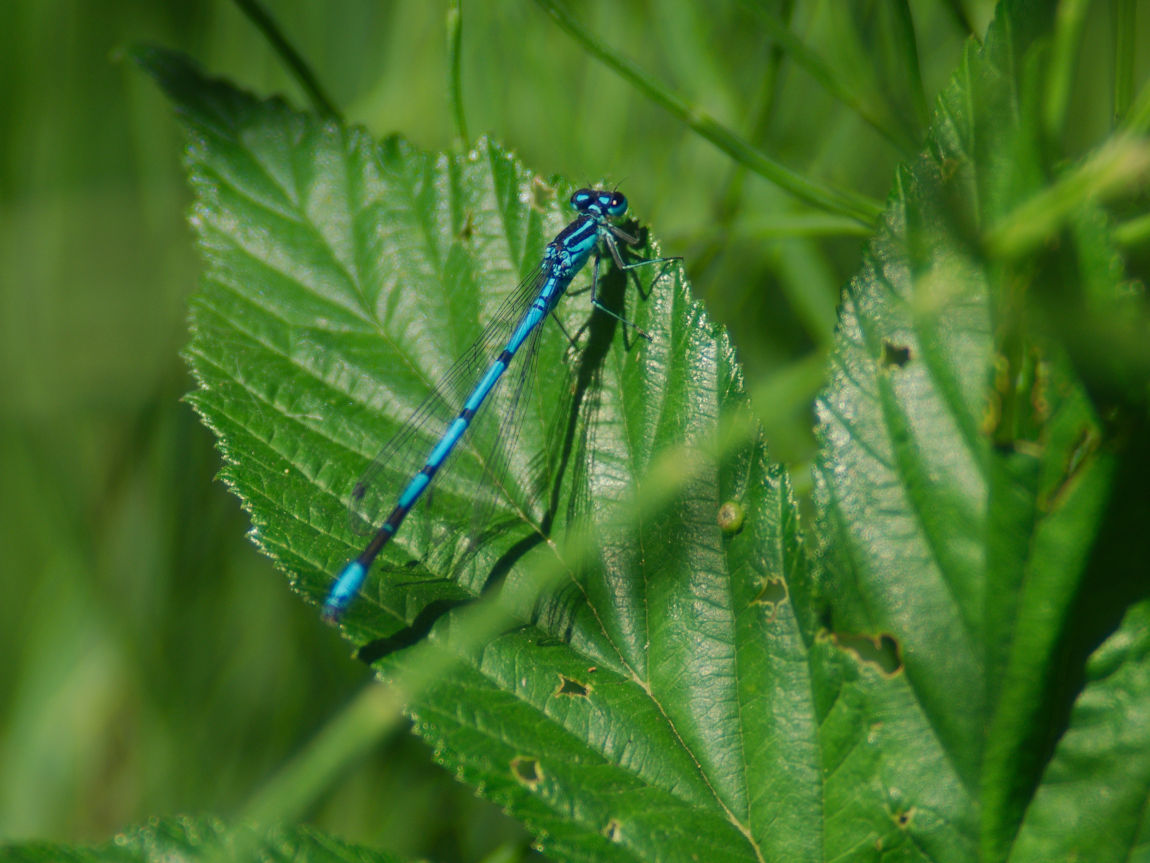 Gestern war ich an einem kleineren See mit kleineren Libellen. Während die bisher fotografierten Großlibellen Reißaus nehmen, wenn man ihnen näher als 1,5 bis 2 m kommt, sind die kleineren Artgenossen nicht so schreckhaft oder sehen einen vielleicht nicht so gut. Jedenfalls konnte ich mit kürzeren Brennweiten arbeiten.