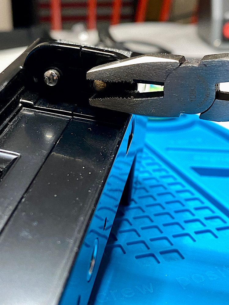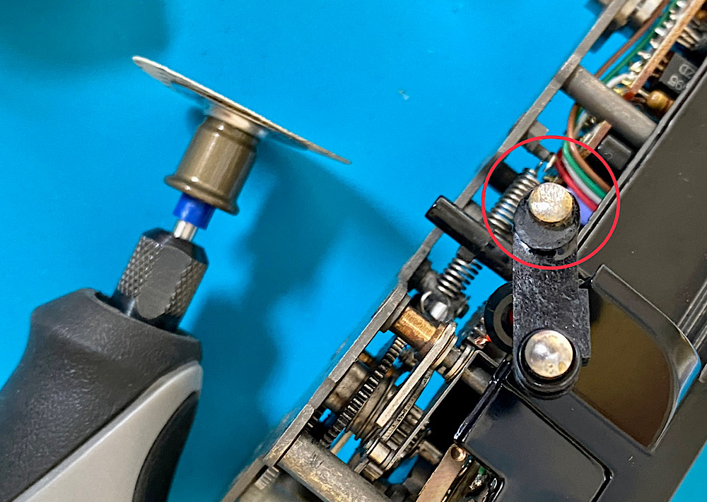 Mit dem kleinen Fräsmesser am Dremel Stylo entferne ich die Loctite-Reste an der Abdeckung des Modusschalters.