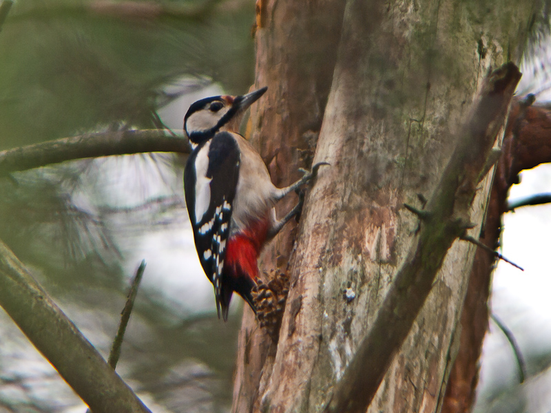 Das bisher beste, allerdings auch nur bearbeitet ansehbare Bild ist das hier, aus etwa 15m Entfernung in einer düsteren Kiefer bei ISO 400, 1/40s, f5,6