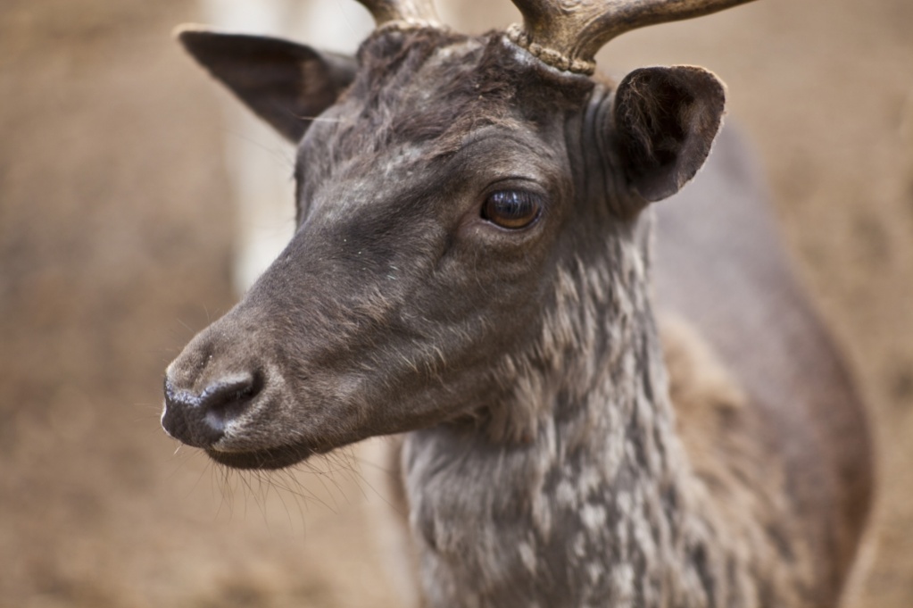 Ich will hier ein paar Offenblendephotos zeigen, jeweils mit einem 100%Crop-Ausschnitt dazu. Die Aufnahmen sind freihand gemacht, was wegen der kurzen Aufnahmedistanz relativ schwierig war, denn den Tieren wurde Futter hingeworfen, was sie sehr quirrelig machte. Es waren leckere Apfelstückchen und mehr Tiere als Äpfelchen. Also mußte man schnell sein, um auch etwas zu erwischen (Tier wie Photograph). Trotzdem hatte ich erstaunlicherweise keinen Ausschuß bei den Aufnahmen.