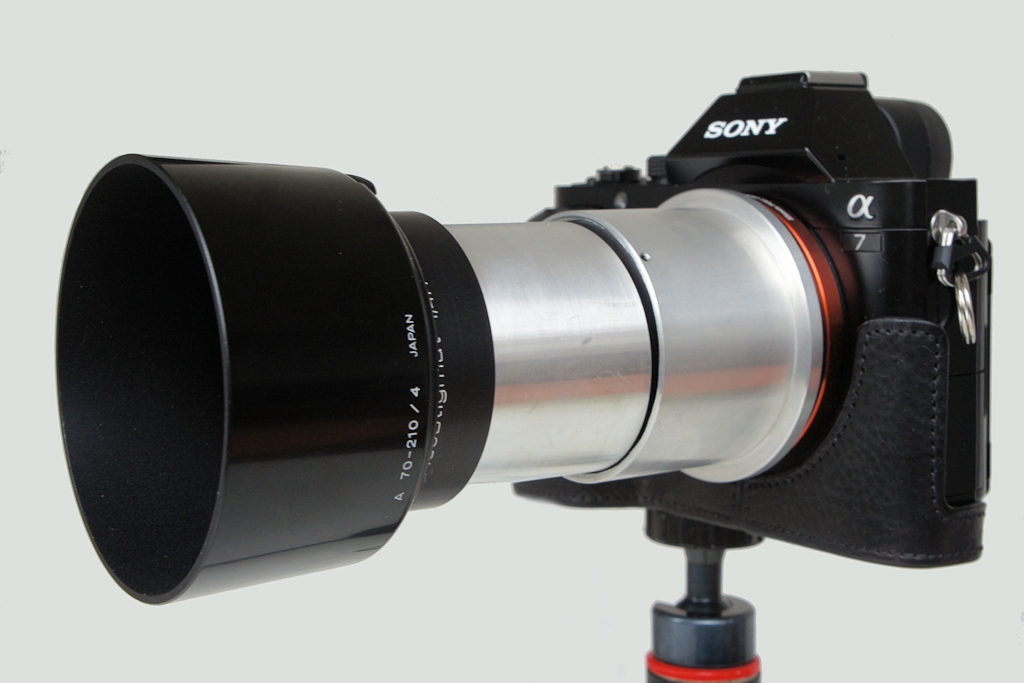 Und zwar in Form einer Aufsteckblende für ein Minolta 4/70-210mm Zoomobjektiv. Diese Blende hat Krallen, die in eine Kerbe am Objektiv greifen und diese so sicher am Objektiv halten.