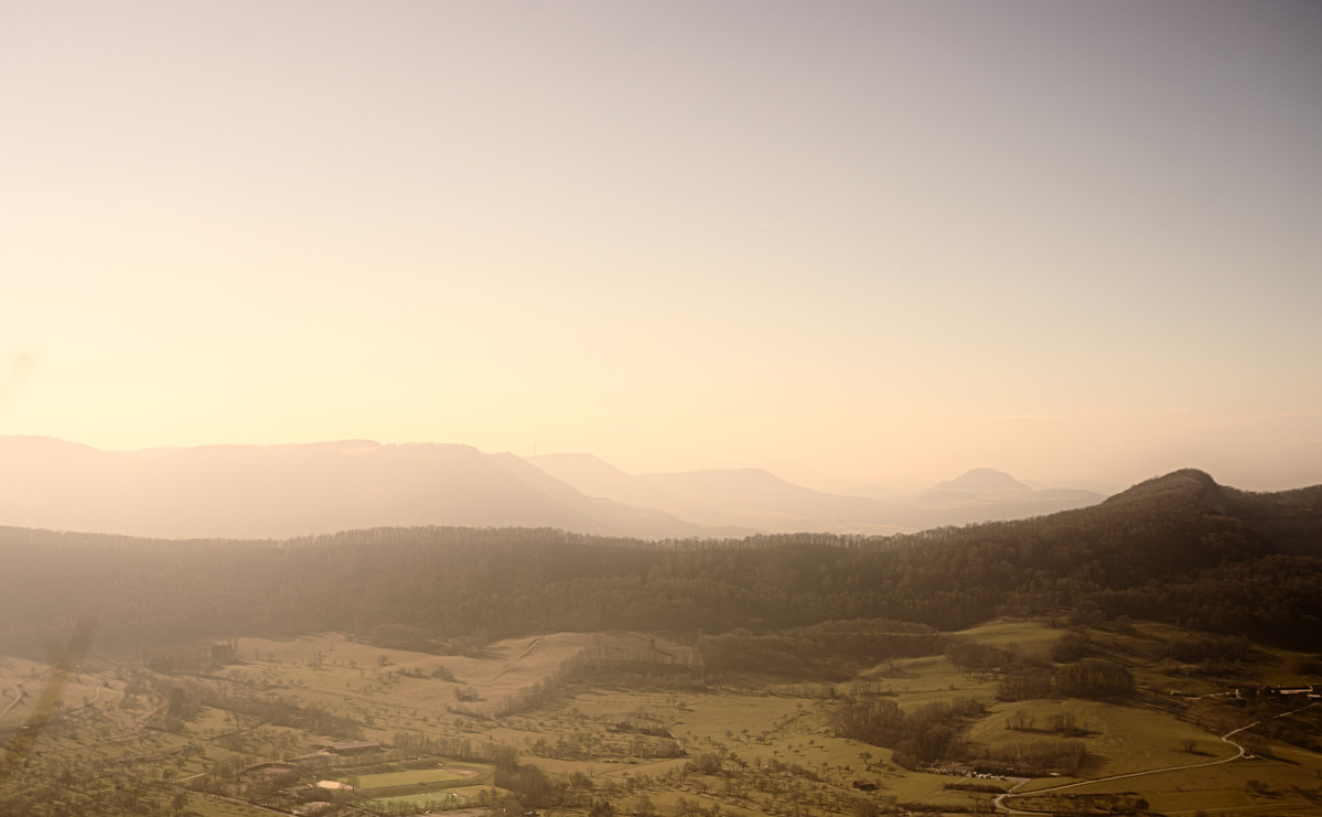 #1: Albtraufblick im Morgendunst (rechts das Neuffner Hörnle, dann die Reutlinger Achalm)