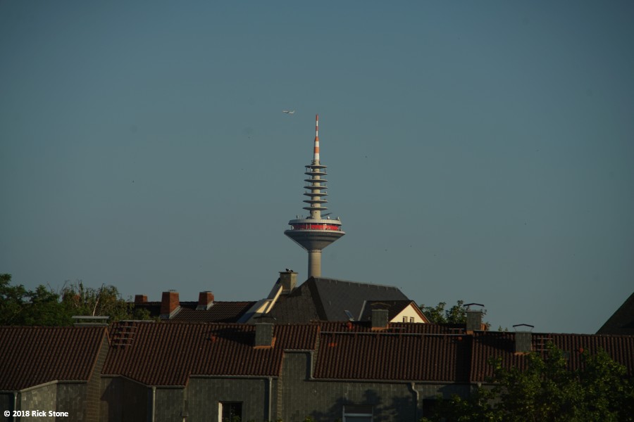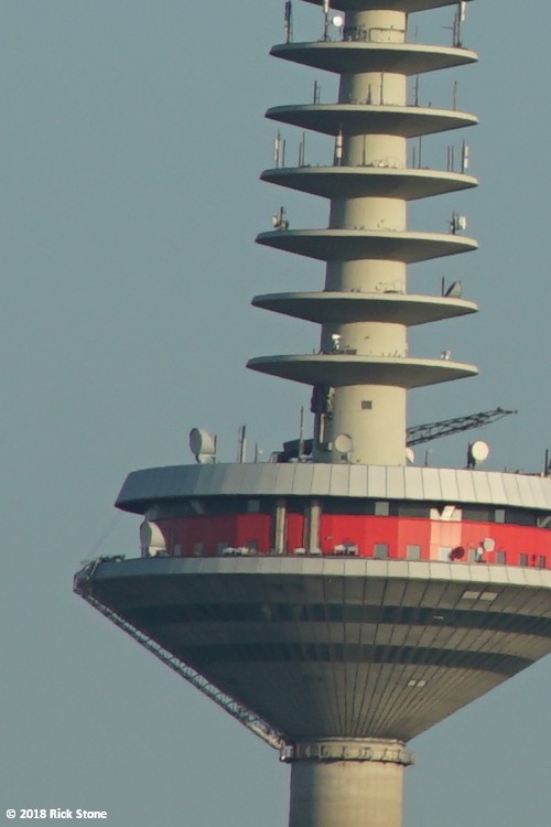 Der Fernsehturm ist ca. 5 km Luftlinie entfernt, Crop 500 x 750 vom obigen Bild