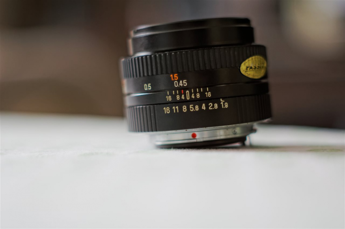 Die Vergütung schimmert leicht blau, ähnlich Pancolar 50/1.8. Hat 6 Lamellen. Skala scheint identisch zu sein, was Farbe und Form angeht. Min Abstand auch 45 cm. Blende ebenfalls 1.9 bis 16. Verarbeitung top, Metergang leicht butterweich.