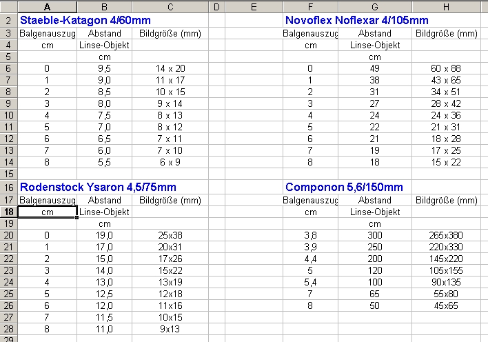 In der Anleitung für den Yashica-Balgen gibt es übrigens auch eine Vergrößerungstabelle: