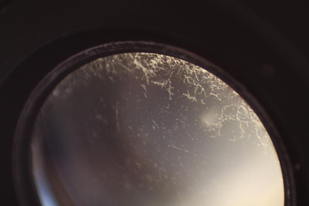 Ich habe jetzt an der Hinterlinse bzw da drinnen seltsame Strukturen entdeckt. Ist das Staub, ist das Pilz?