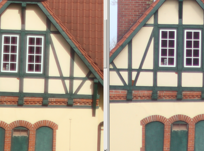 Ich zitiere nochmal meinen Vergleich von oben. Fuer einfache Lichtverhaeltnisse ohne starke Kontrastkanten zeigt mein Album oben, dass beide Objektive nicht zu unterscheiden sind. Dein Direktvergleich mit den weissen Kanten deckt sich mit meiner subjektiven Einschaetzung.
