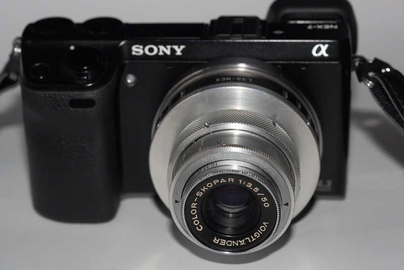 Es folgt mit seinem sehr eigenwilligen Gehäusen, das zwar aussieht, als hätte es einen Fokusring, vom Auflagemaß nicht irgendwelchen Kameraanschlüssen, sondern da es in einer Vergrößererbühne hing, hat man dem Objektiv wohl eine irgendwie zusammengeschusterte Schraubfassung verpasst und sich um Auflagemaß, die für einen Vergrößerer nicht so wichtig sind, nicht geschert. Da wurde dann vermutlich der Sitz der Filmbühne "frei nach Schnauze zum Objektiv" passend gemacht.