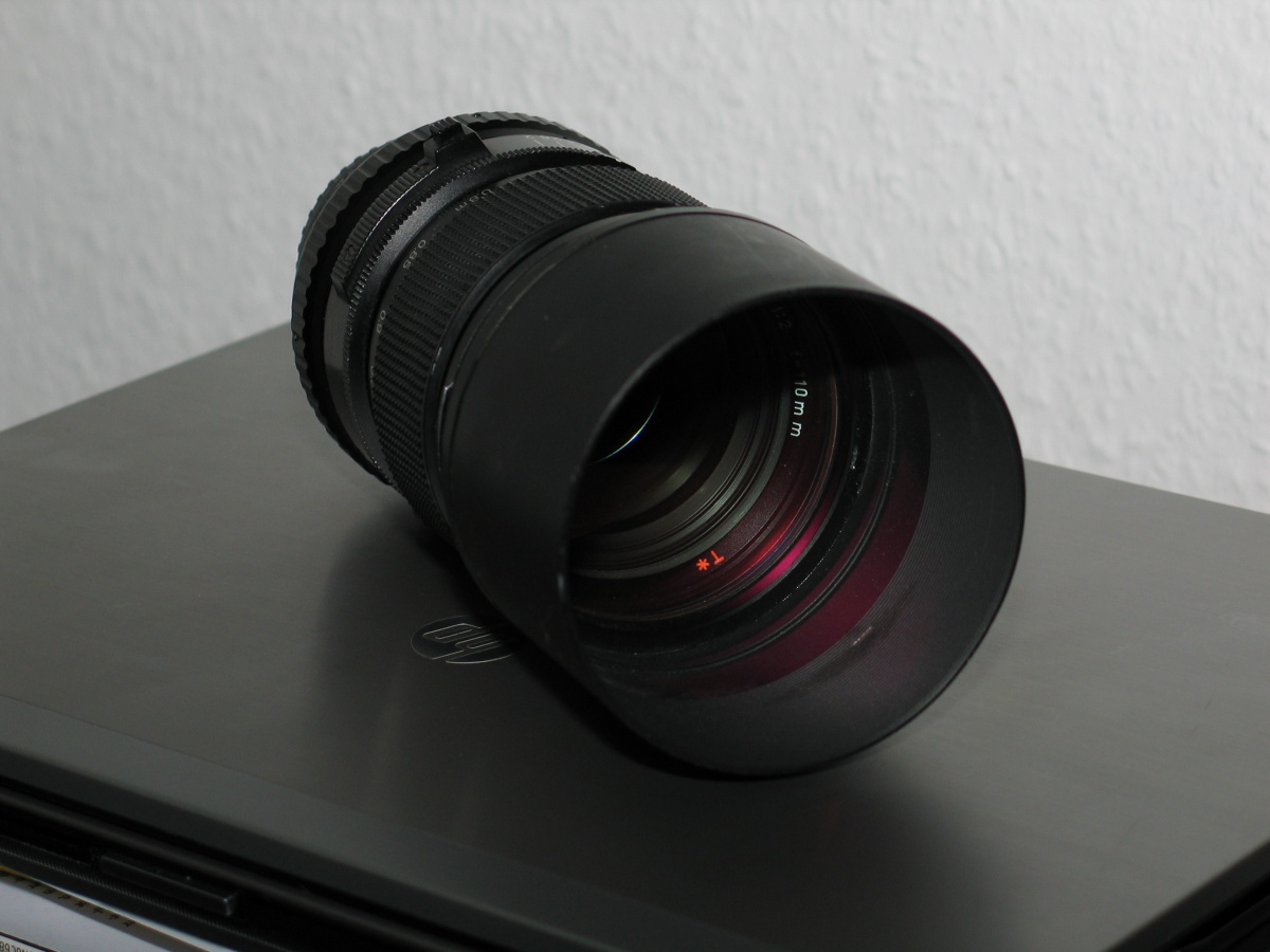 wenn man den Thread von Praktinafan durchgeht sieht man mehrere nette Beispiele, auch mein Planar 2/110 verträgt eine gute Streulichtblende, da das Original HaBla-Teil defekt war und sowieso eine Adaption an das H70-Bajonett anstand entstand diese Kombi: