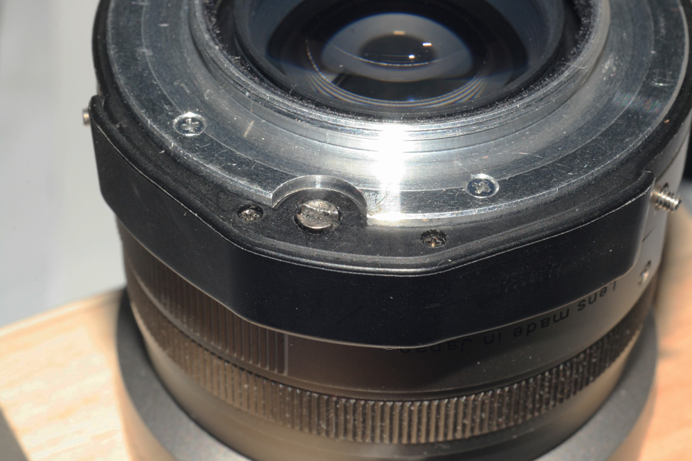 Am Objektiv selbst sieht man dies, wenn einmal die schwarze Abdeckung des Planars entfert wird.
