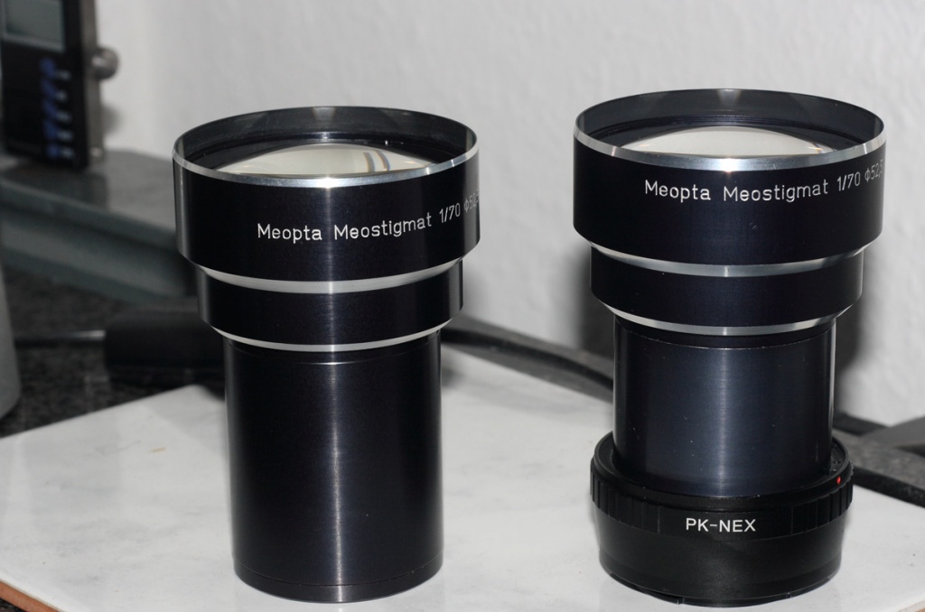 Und hier noch ein Größenvergleich zwischen dem umgebauten und einem weiteren, mich heute erreichenden Meostigmat 1/70mm...